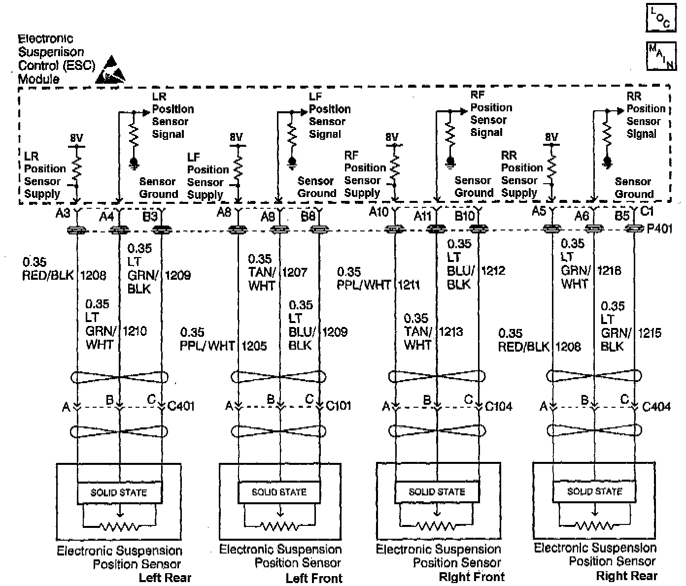 - The ESC module uses a common power supply in order to provide voltage to all of the position sensors. Therefore, a position sensor (overcurrent) code may be set if a malfunction is detected on any position sensor supply circuit.