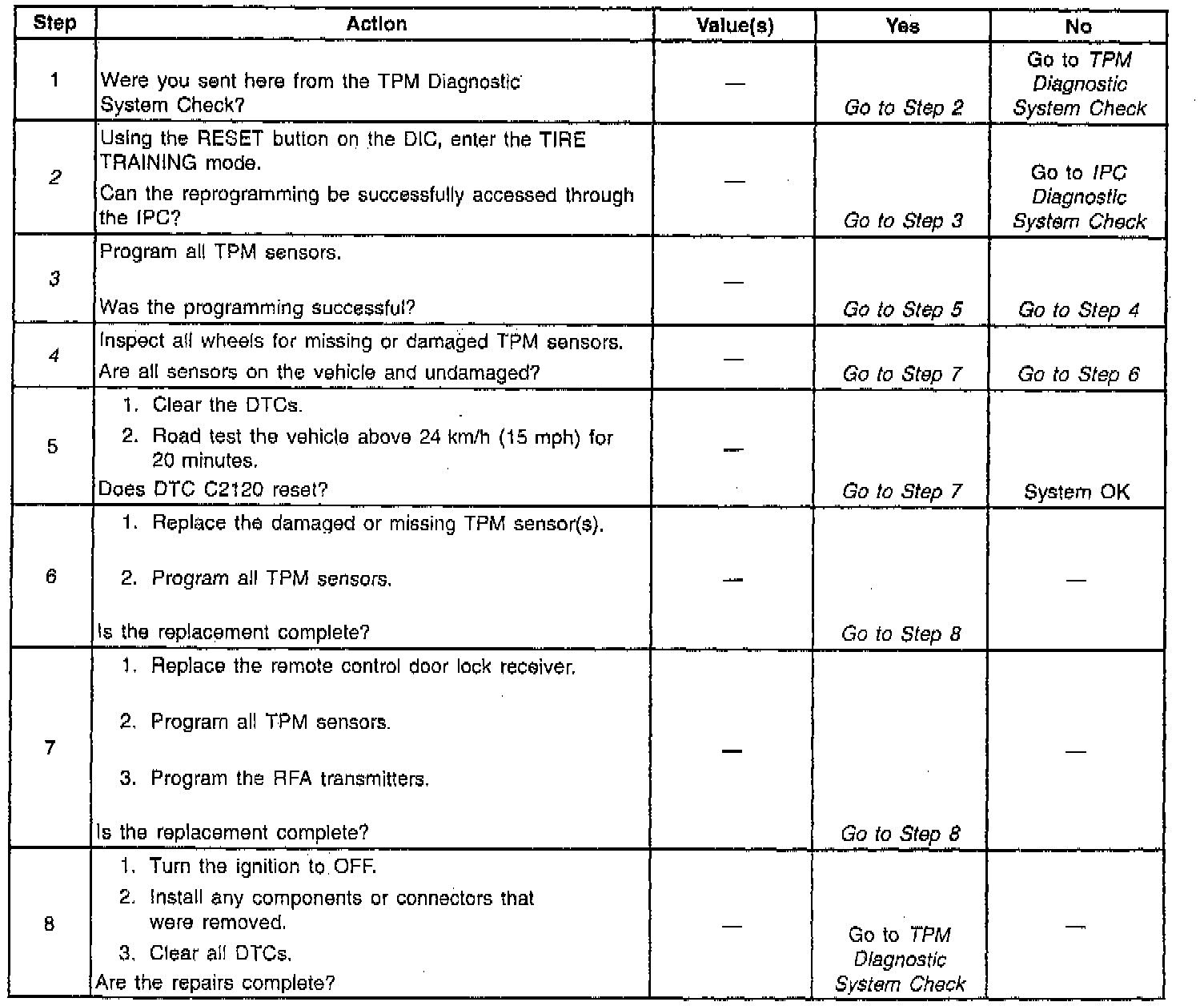 2. This test checks if the IPC can enter the TIRE TRAINING mode. If the display is blank, or if the DIC buttons do not respond when pressed, refer to IPC Diagnostic System Check. Testing and Inspection
