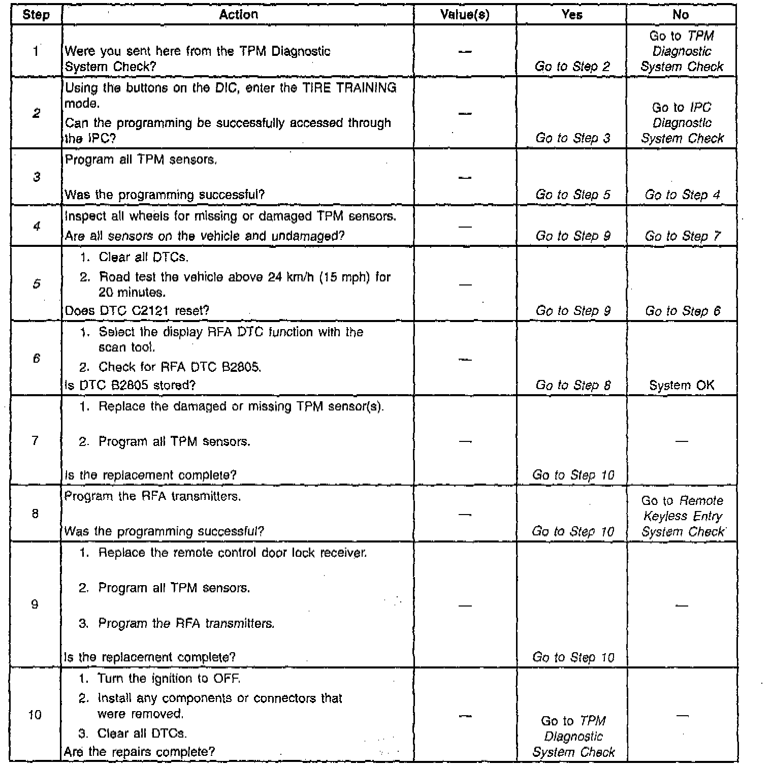 2. This test checks if the IPC can enter the TIRE TRAINING mode. If the display is blank, or if the DIC buttons do not respond when pressed, refer to IPC Diagnostic System Check. Testing and Inspection