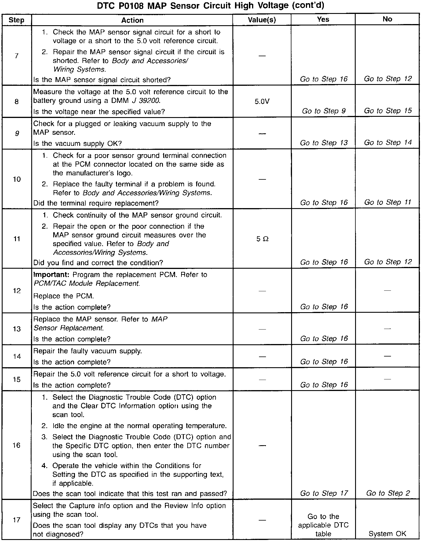 ^ The PCM 5.0 volt reference circuits are internally connected within the PCM. If all the MAP sensor circuits are OK, inspect the following component/circuits for malfunctions: