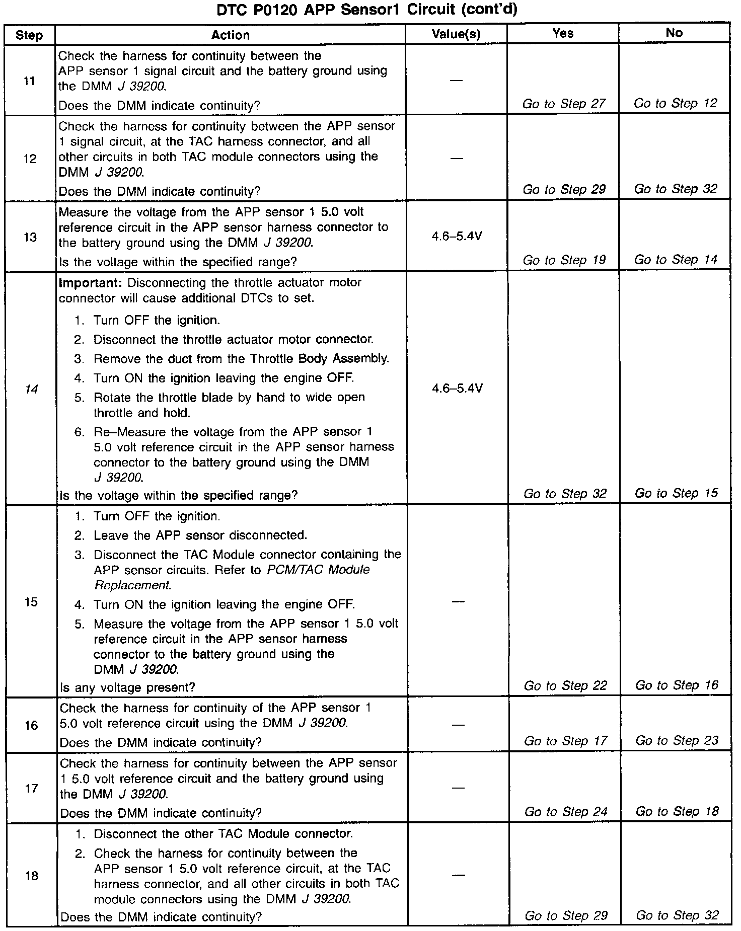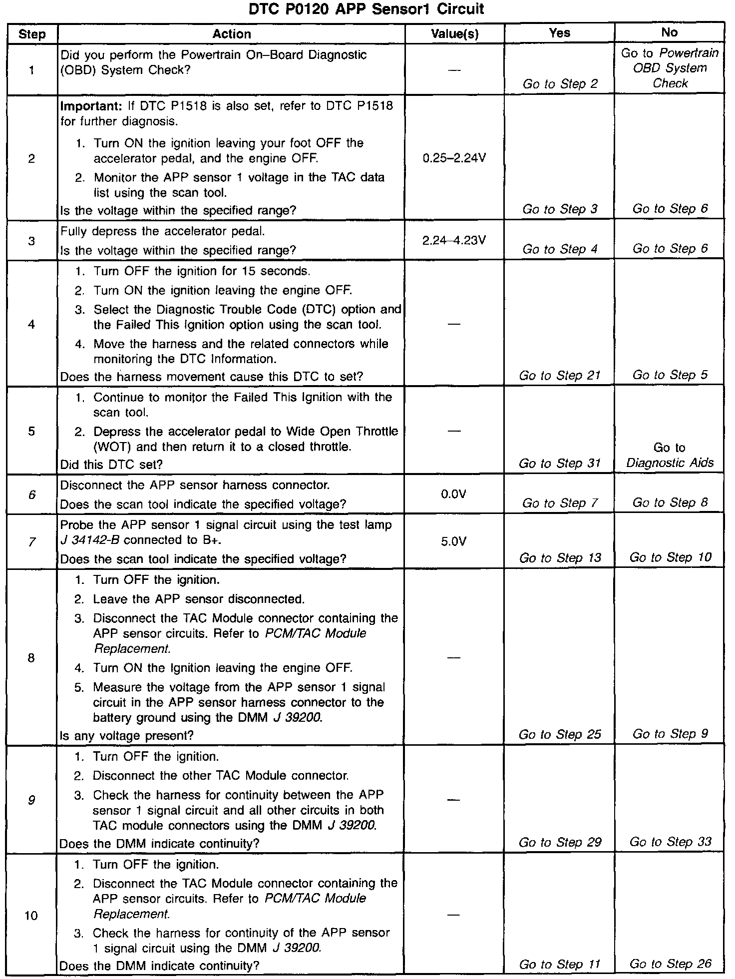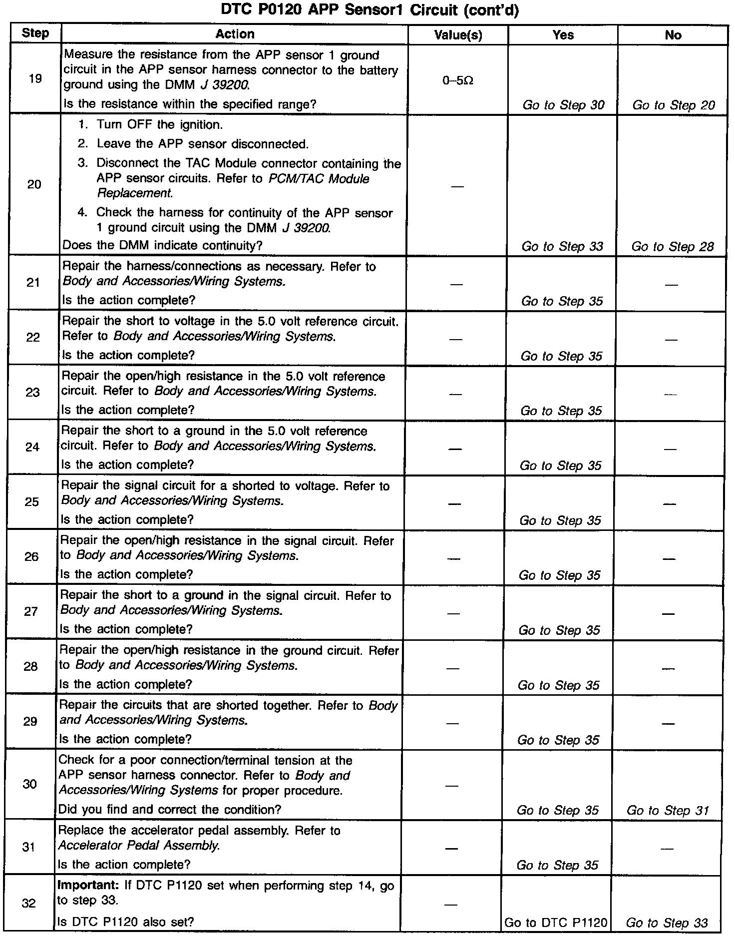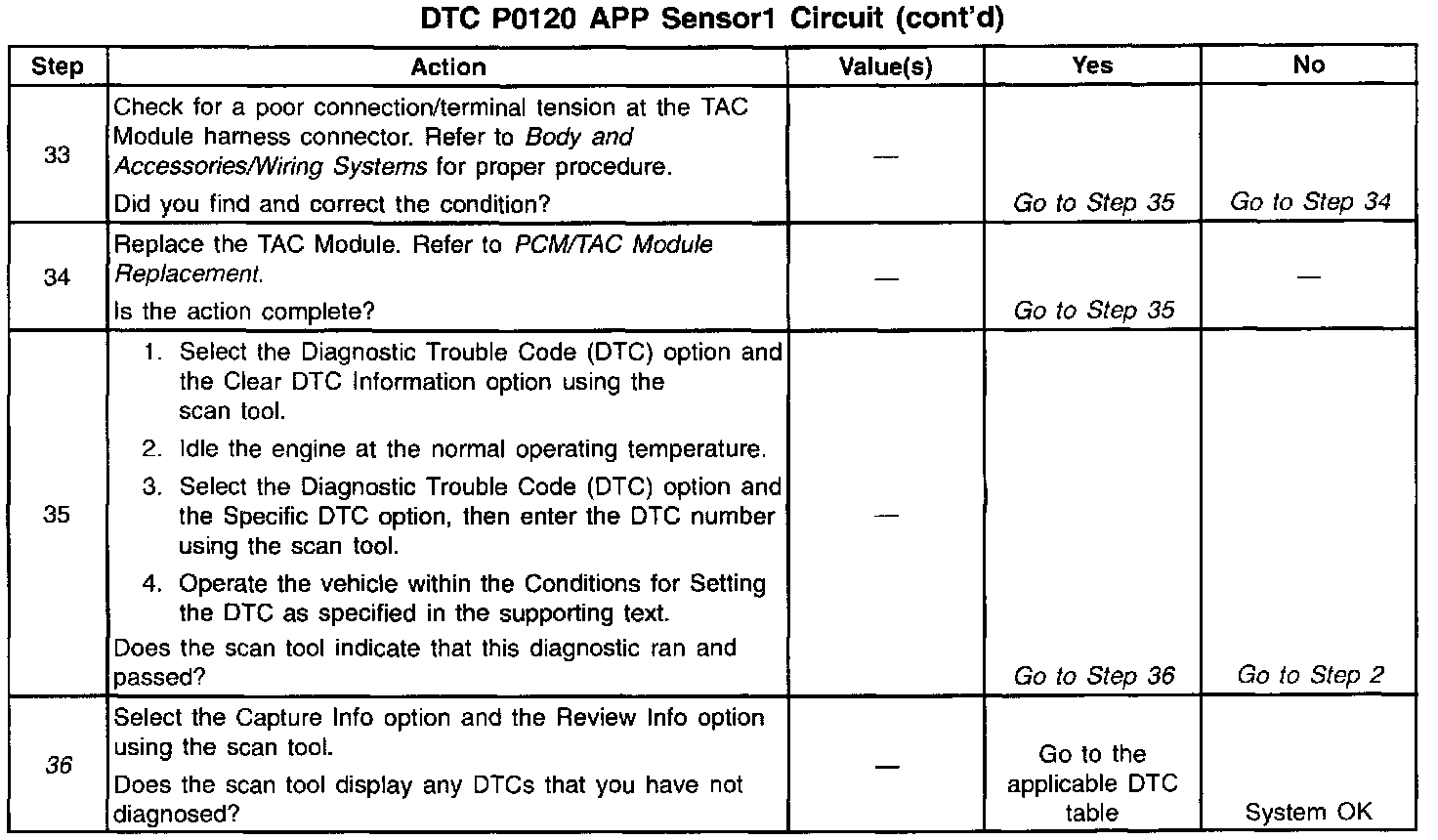 ^ When the TAC module detects throttle movement with a DTC P0120 set, a DTC P0121 will also set.
