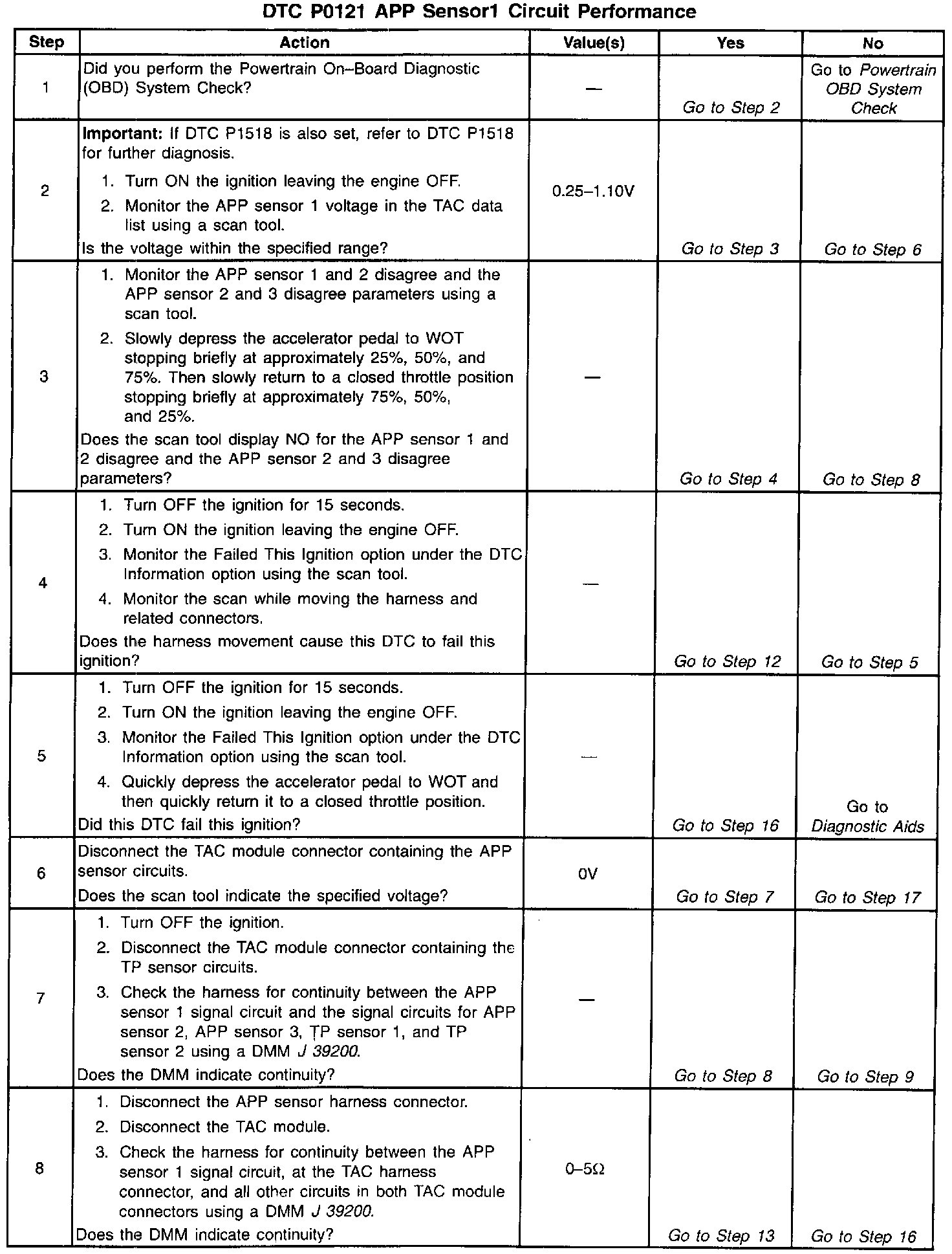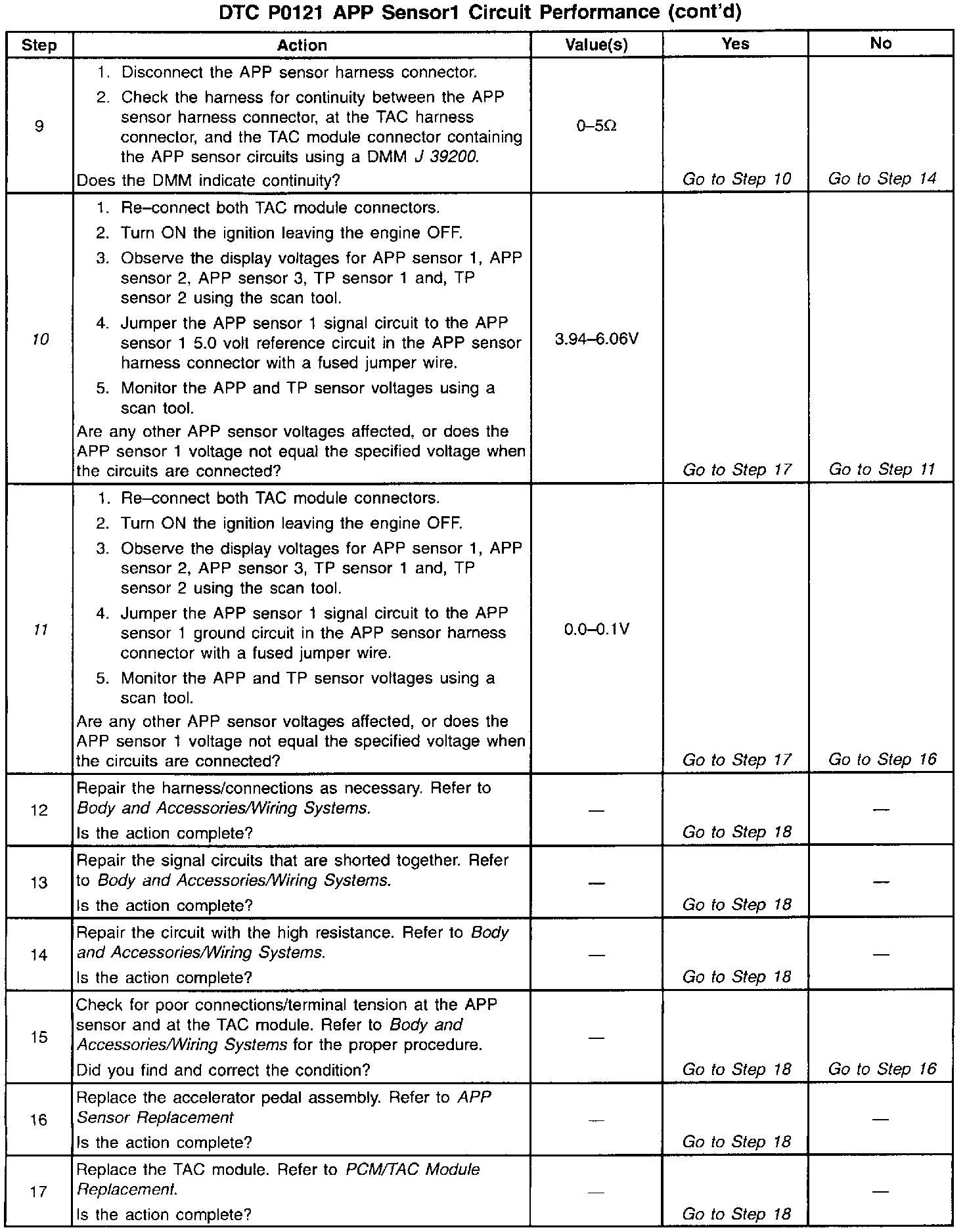 10. Jumping one APP sensor signal circuit to 5.0 volts should not affect any of the other APP sensor voltages. A problem exists within the TAC module if jumping the circuits affects another APP parameter.