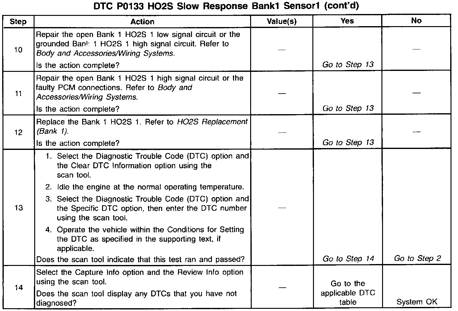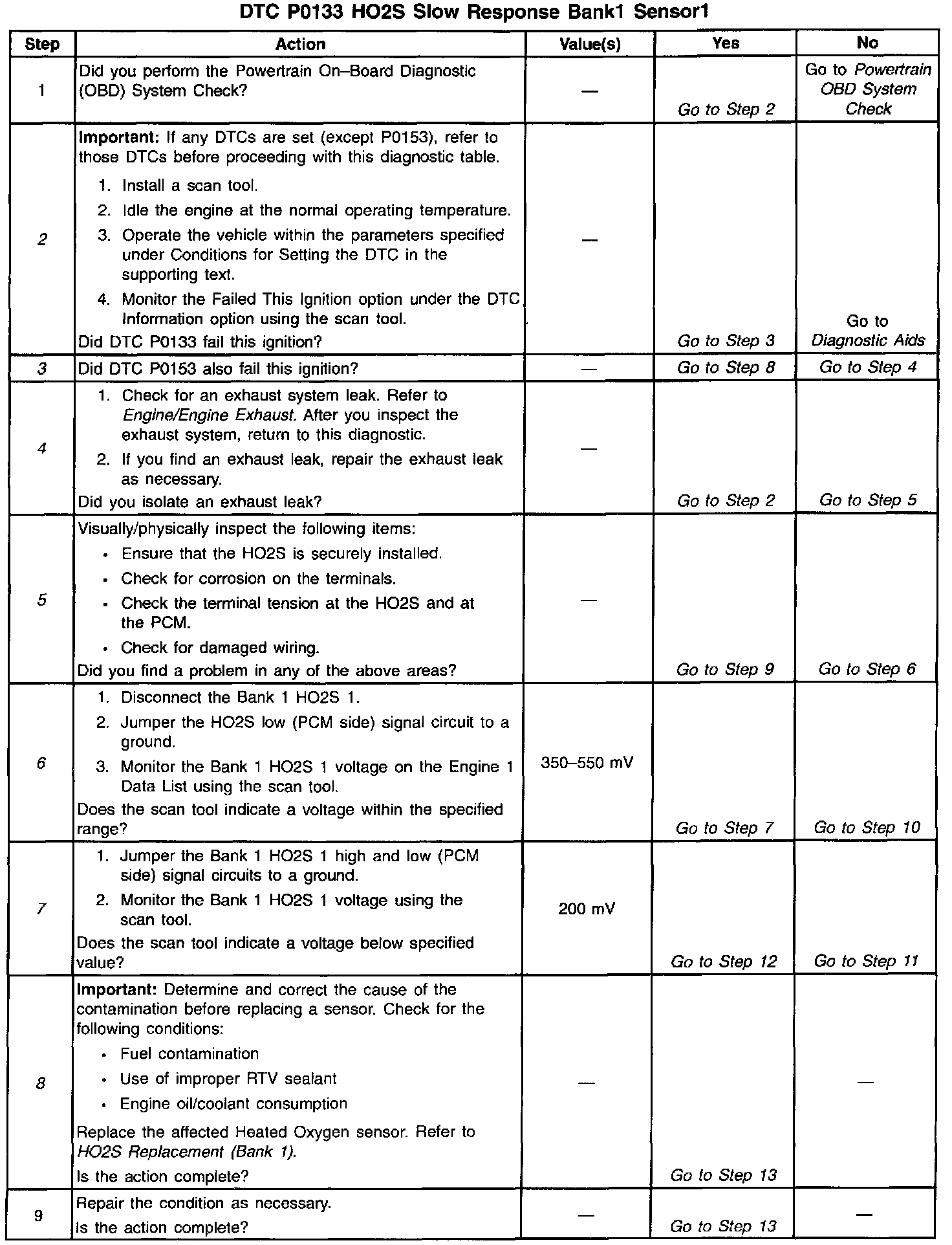The PCM determines the lean to rich transition when the HO2S voltage changes from less than 300 mV to greater than 600 mV. The PCM determines the rich to lean transition when the HO2S voltage changes from more than 600 mV to less than 300 mV. An HO2S that responds too slowly is most likely defective. Replace the HO2S.