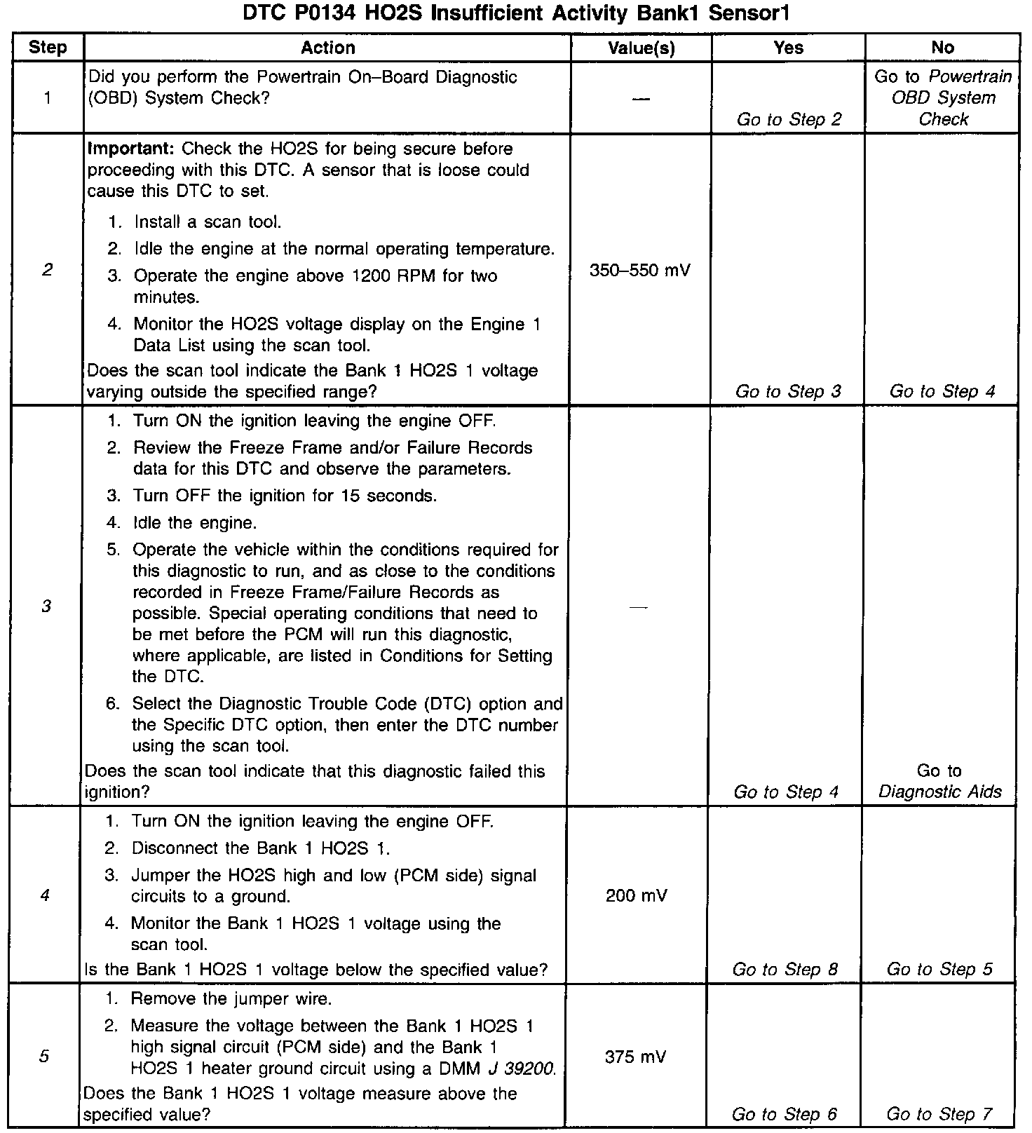 4. If the scan tool indicates the HO2S voltage goes below 200 mV, this indicates the HO2S circuits and PCM are OK.