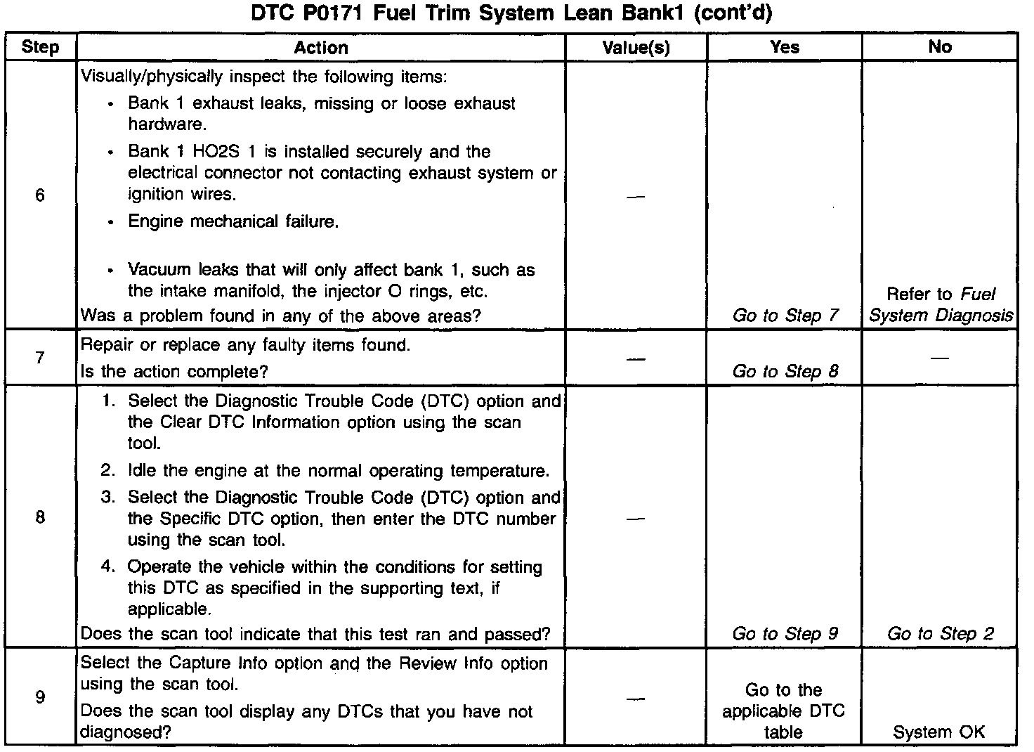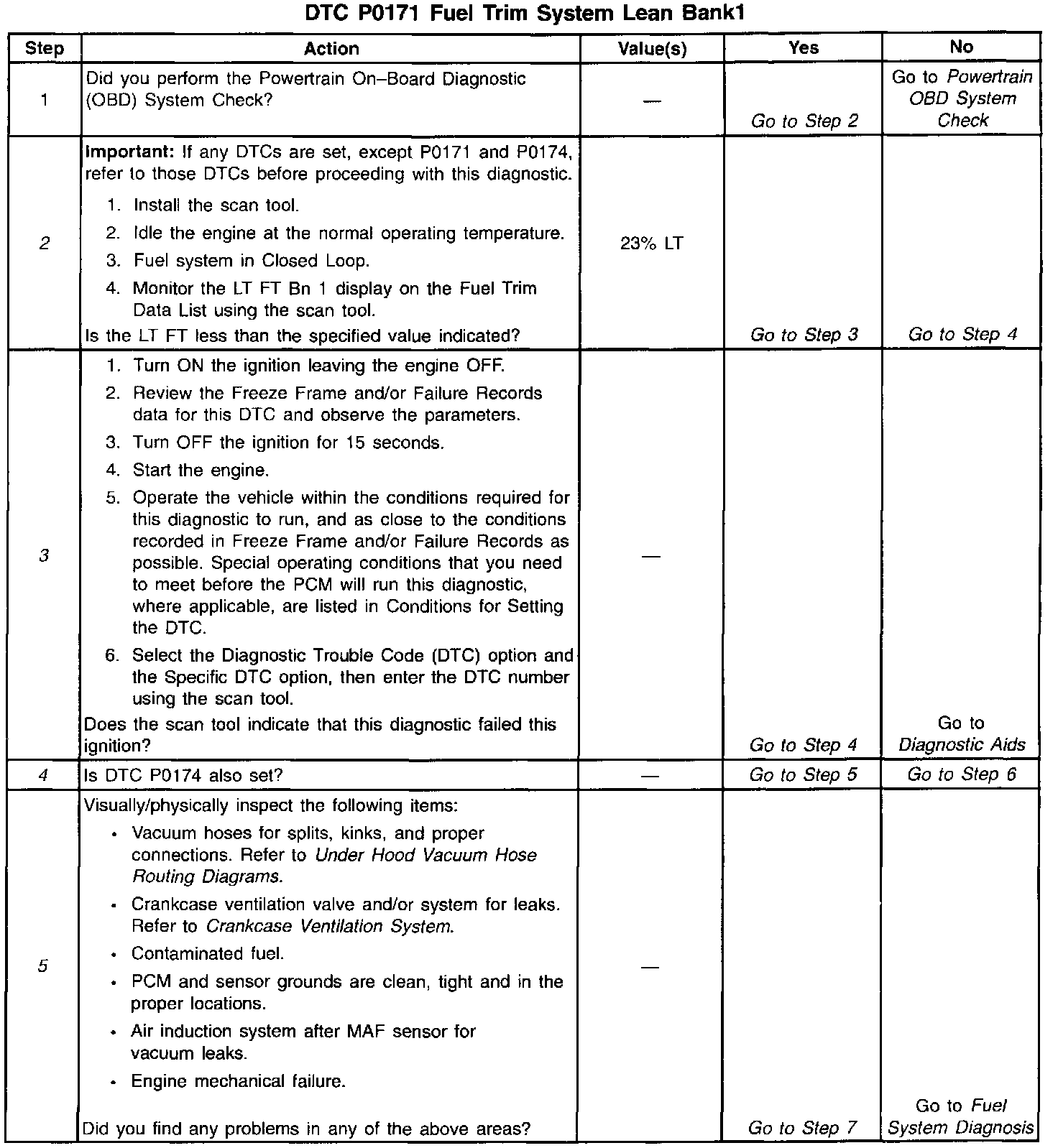 ^ A fuel delivery malfunction causes this DTC to set. Thoroughly inspect all items that cause a lean condition.