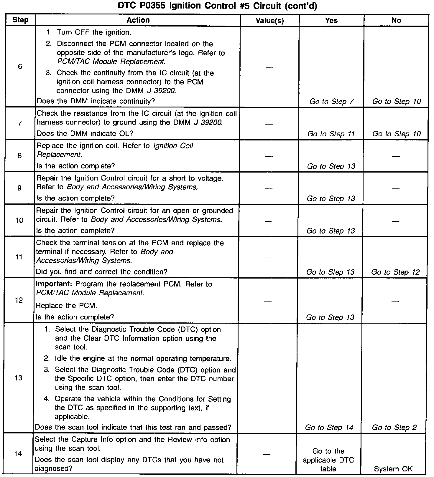 ^ The PCM detects the ignition control circuit is grounded, open or shorted to a voltage.