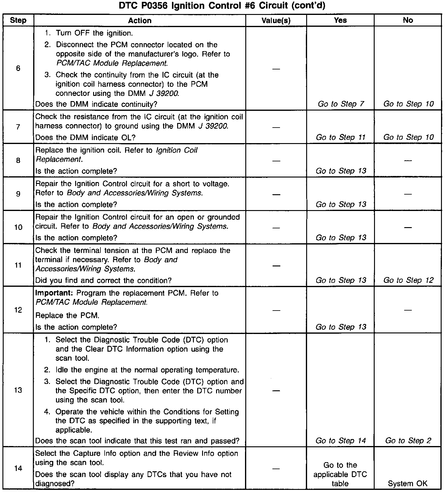 ^ The PCM detects the ignition control circuit is grounded, open or shorted to a voltage.