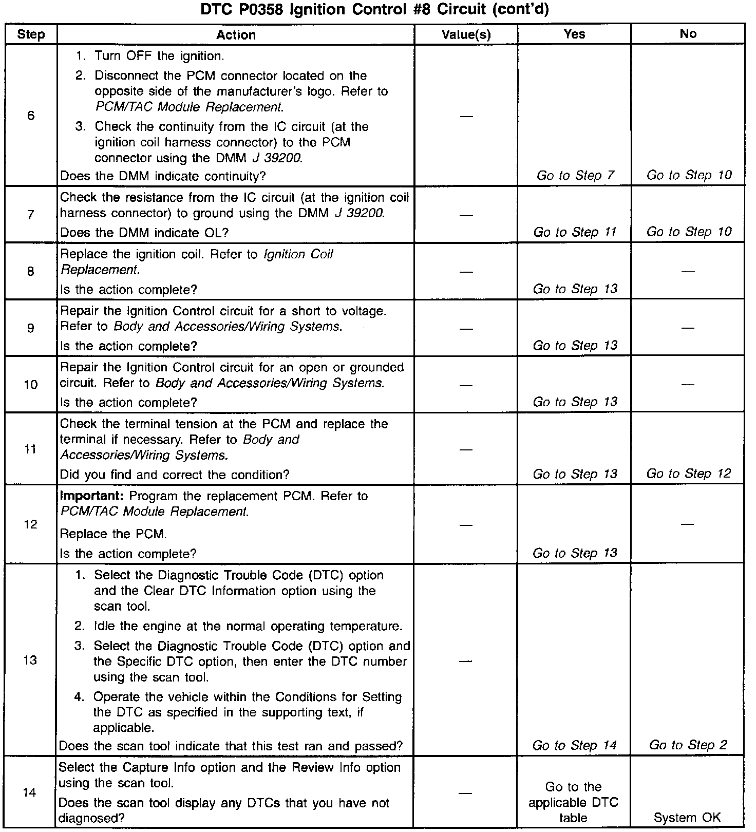 ^ The PCM detects the ignition control circuit is grounded, open or shorted to a voltage.
