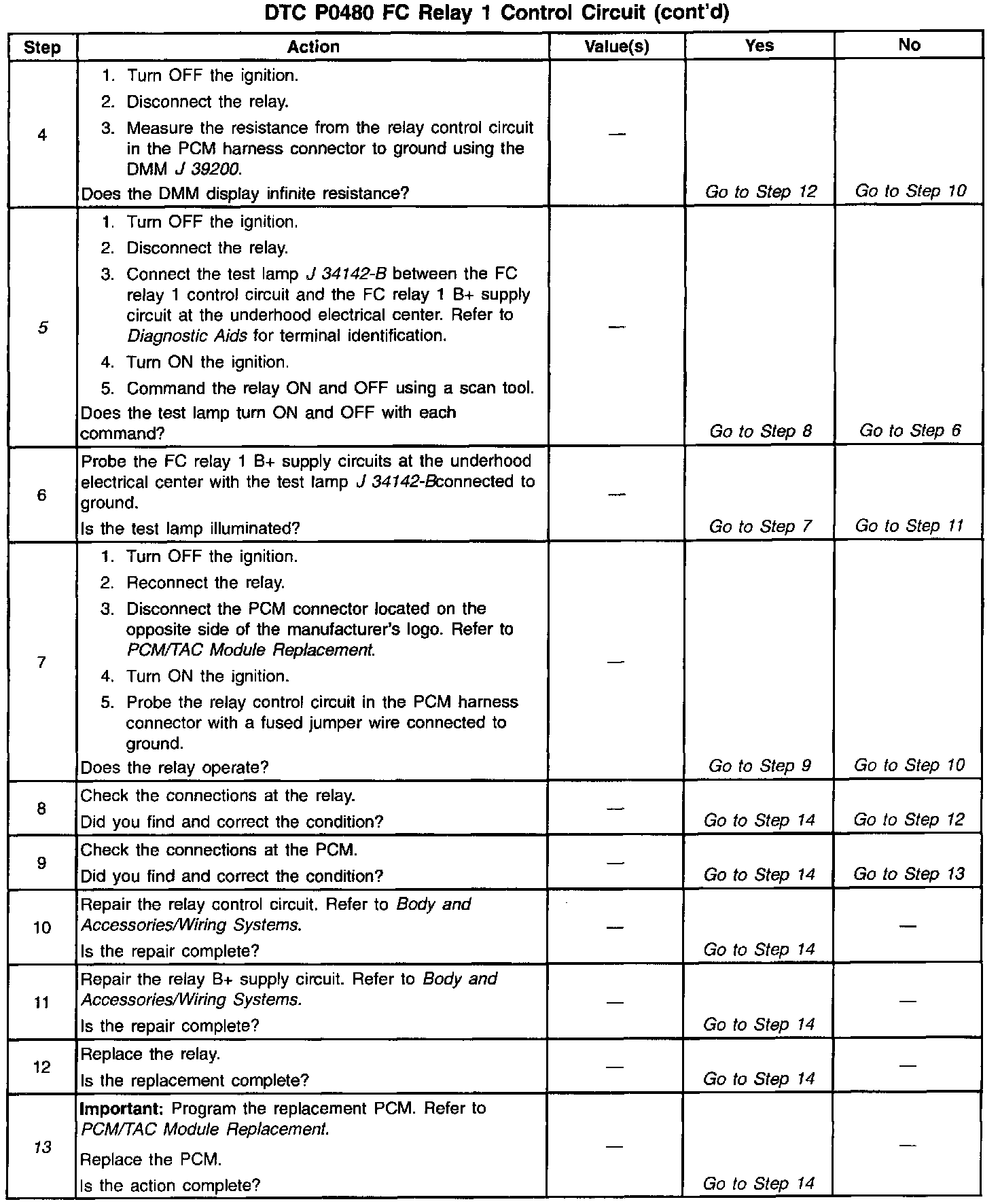 13. If you do not find any trouble in the control circuit or the connection at the PCM, the PCM may be faulty. However, this is an extremely unlikely failure.