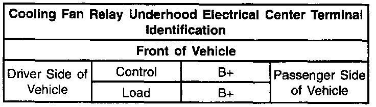 Ignition voltage is supplied directly to the cooling fan relay coil. The PCM controls the relay by grounding the control circuit via an internal switch called a driver. The primary function of the driver is to supply the ground for the controlled component. Each driver has a fault line which the PCM monitors. When the PCM commands a component ON, the voltage of the control circuit should be low (near 0 volts). When the PCM commands the control circuit to a component OFF, the voltage potential of the circuit should be high (near the battery voltage). If the fault detection circuit senses a voltage other than what the PCM is expects, the fault line status changes causing the DTC to set.