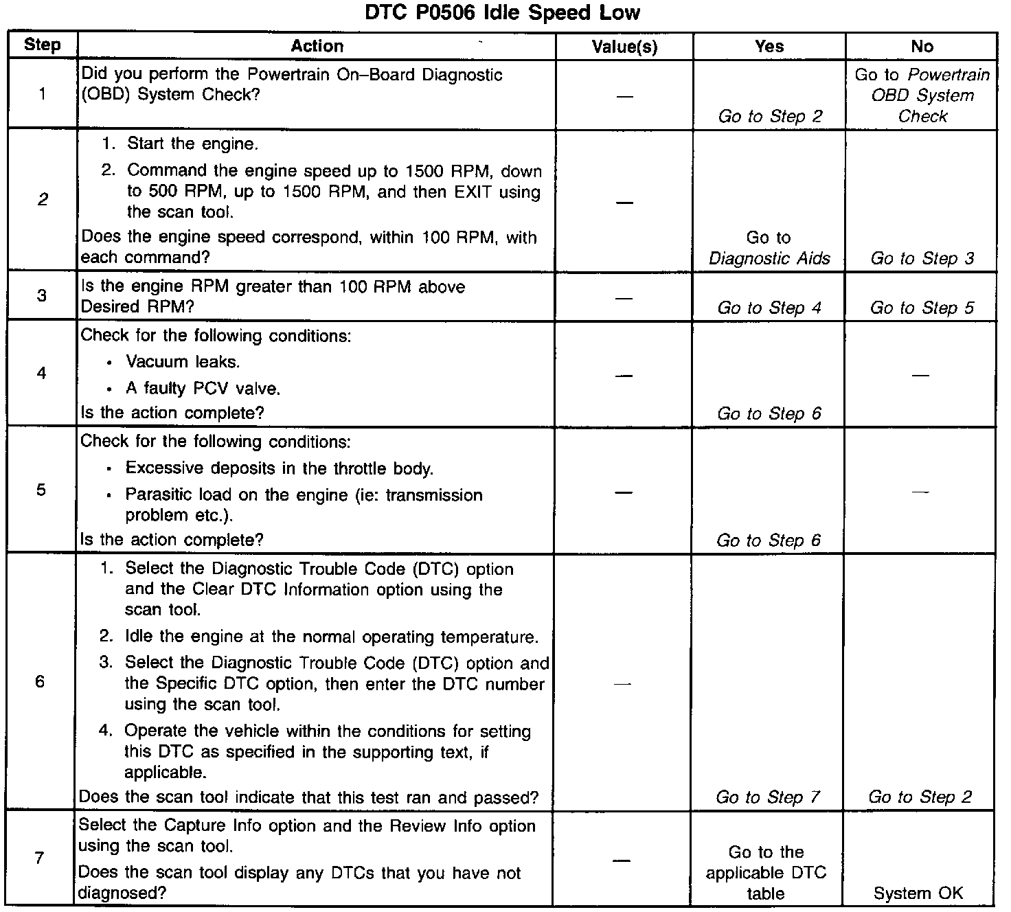 The numbers below refer to the step numbers on the diagnostic table.