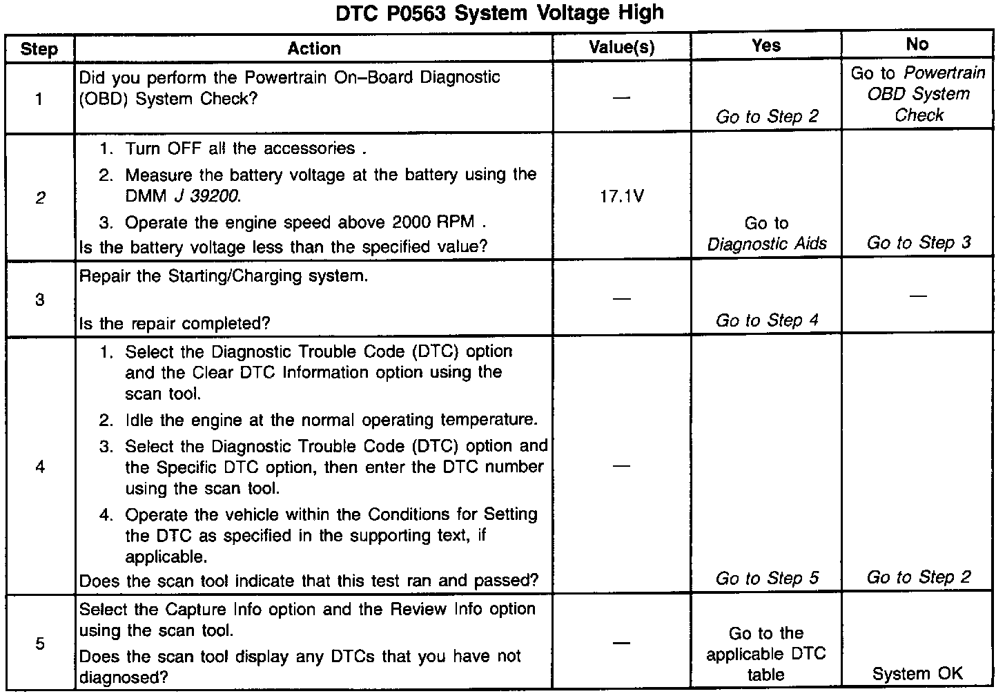 2. This step checks for excessive generator output. The voltage should remain below 17.1 volts.
