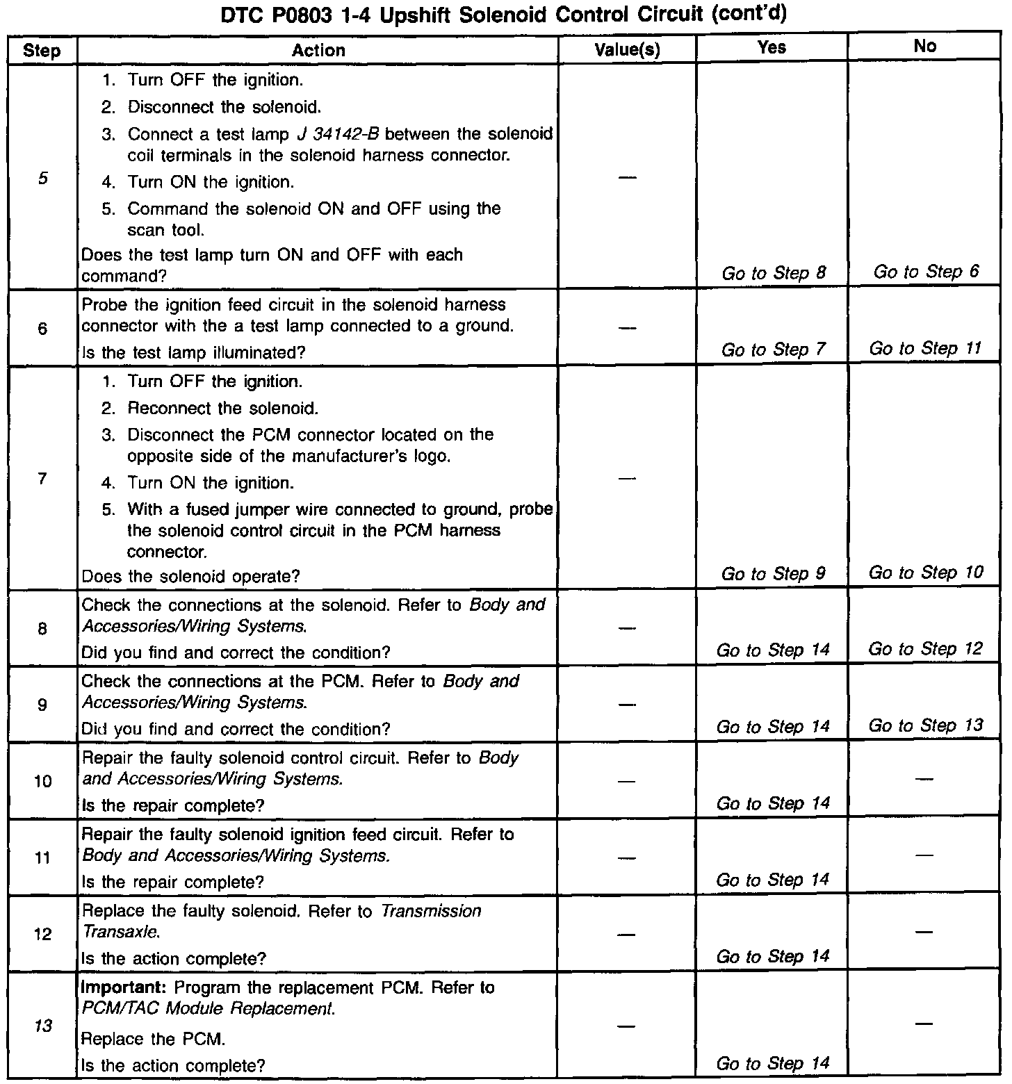 13. If you do not find any trouble in the control circuit or the connection at the PCM, the PCM may be faulty. However, this is an extremely unlikely failure.