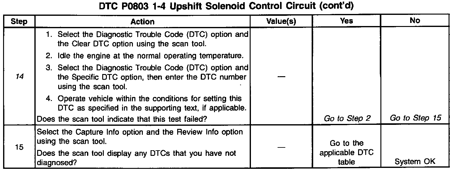 14. This DTC will not report a pass. The scan tool status for this DTC will never report a pass. The scan tool will only display when the diagnostic fails. The repair is not complete if the scan tool indicates that the diagnostic ran and failed.