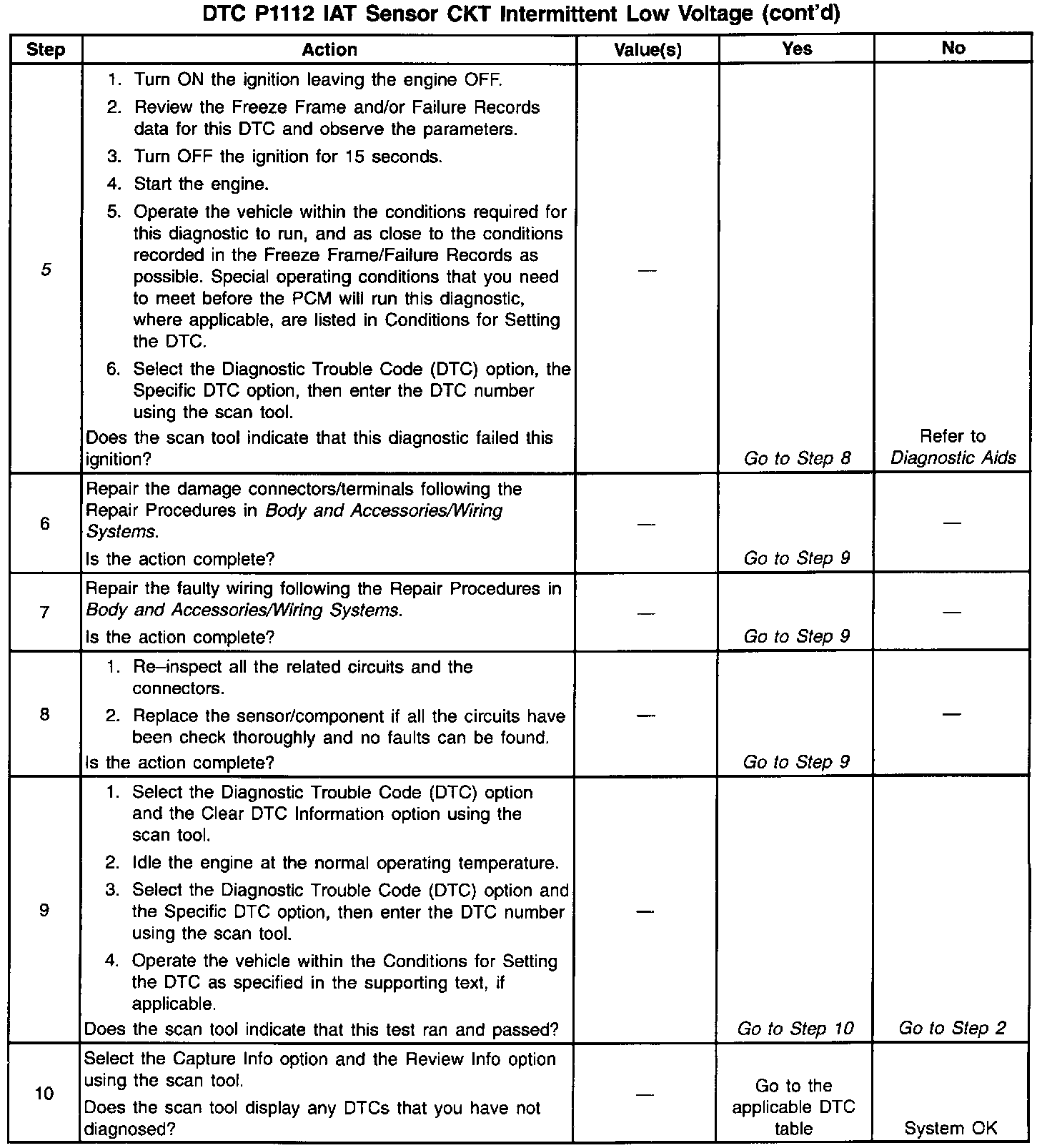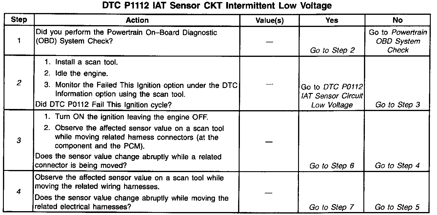 2. If DTC P0112 failed this ignition, this indicates a hard failure is present. When a hard failure is present, both the hard and intermittent DTCs set.