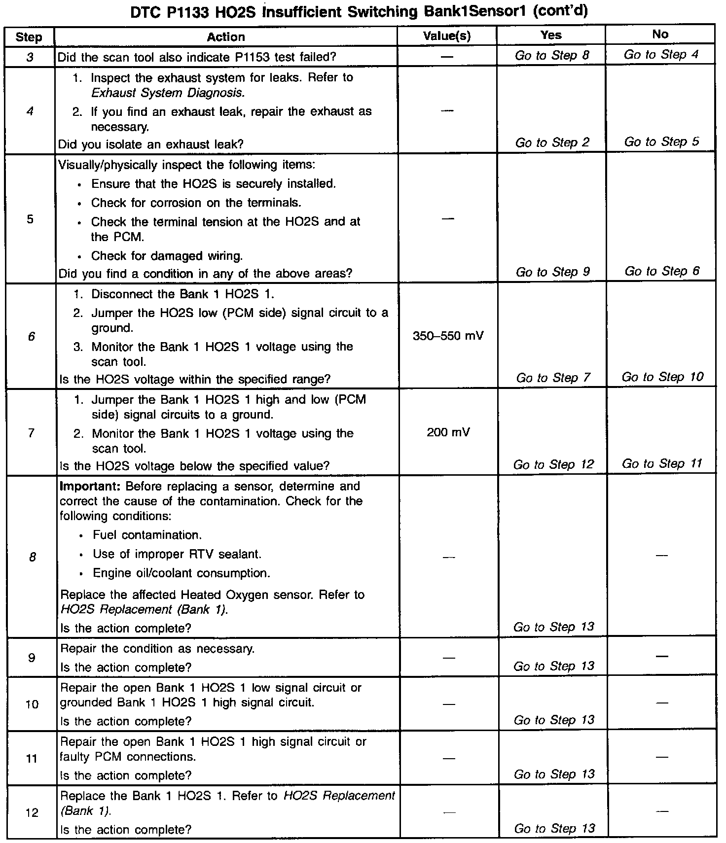 ^ A malfunction in the HO2S heater circuits will cause a DTC P1133 to set. Check HO2S heater circuits for intermittent opens/connections.