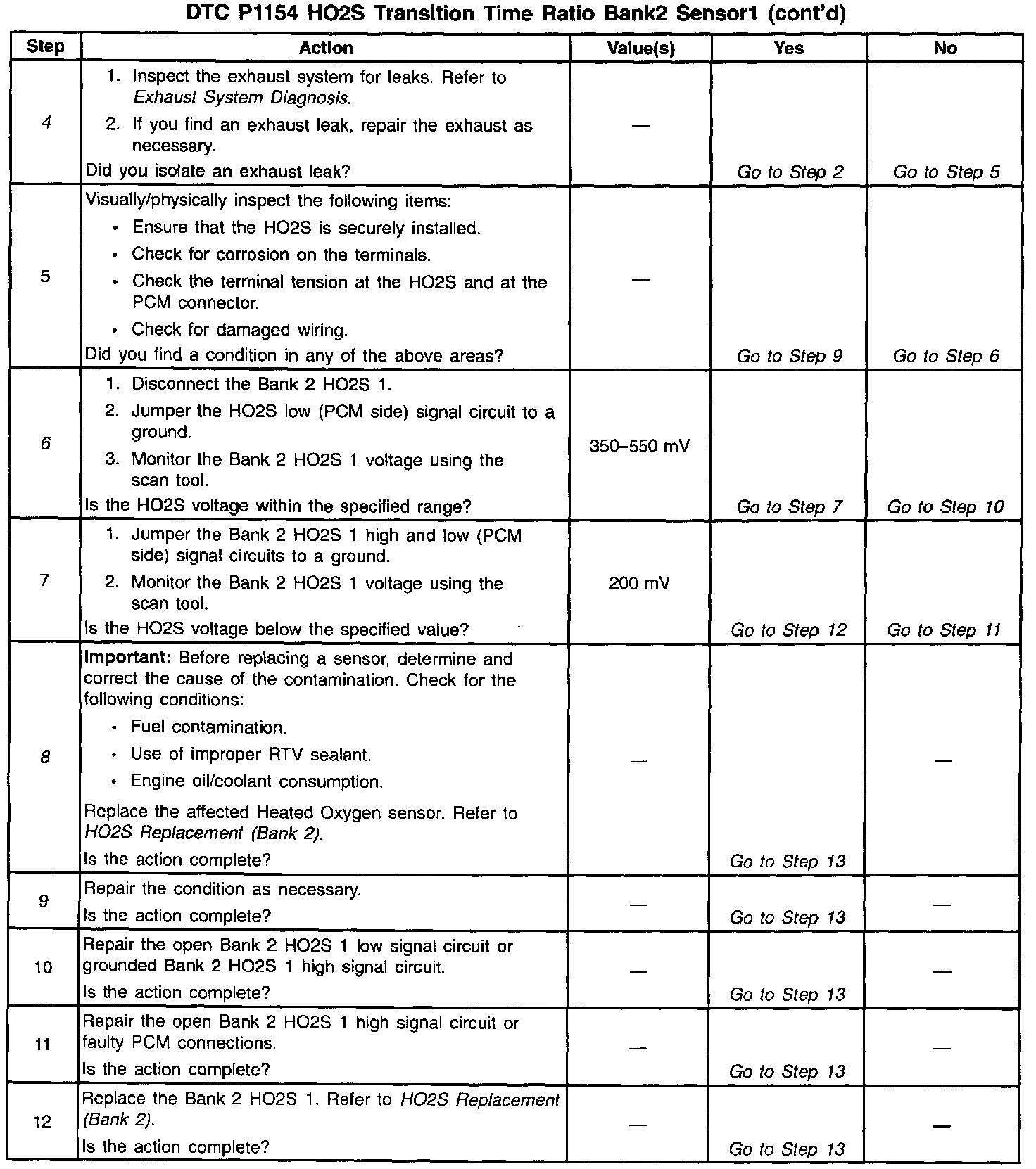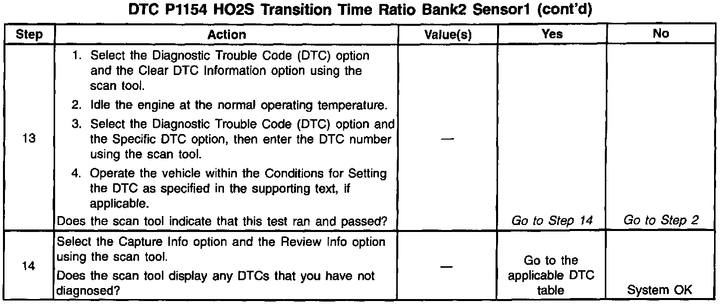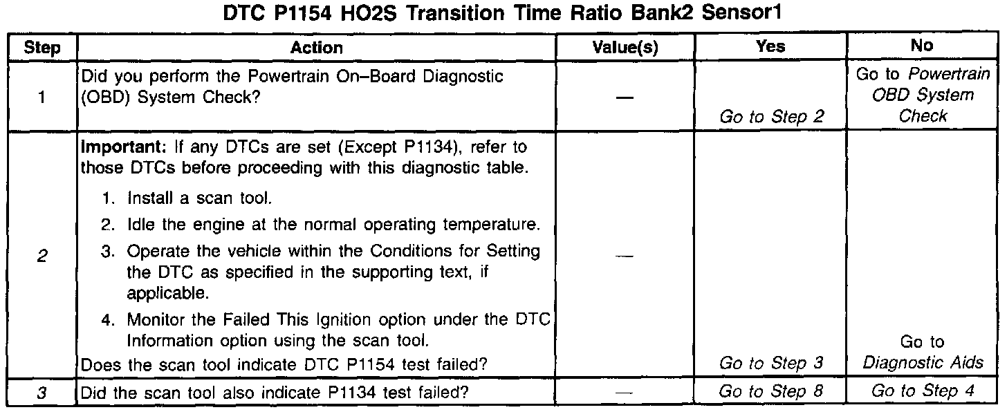 The PCM monitors the Heated Oxygen Sensor (HO2S) activity. The PCM counts the number of times that the HO2S responds from rich to lean and from lean to rich and adds the amount of time it took to complete all transitions. The PCM determines the average time for all transitions with this information. The PCM divides the rich to lean average by the lean to rich average to obtain a ratio. The PCM sets a DTC P1154 if the HO2S ratio is not within a predetermined range.
