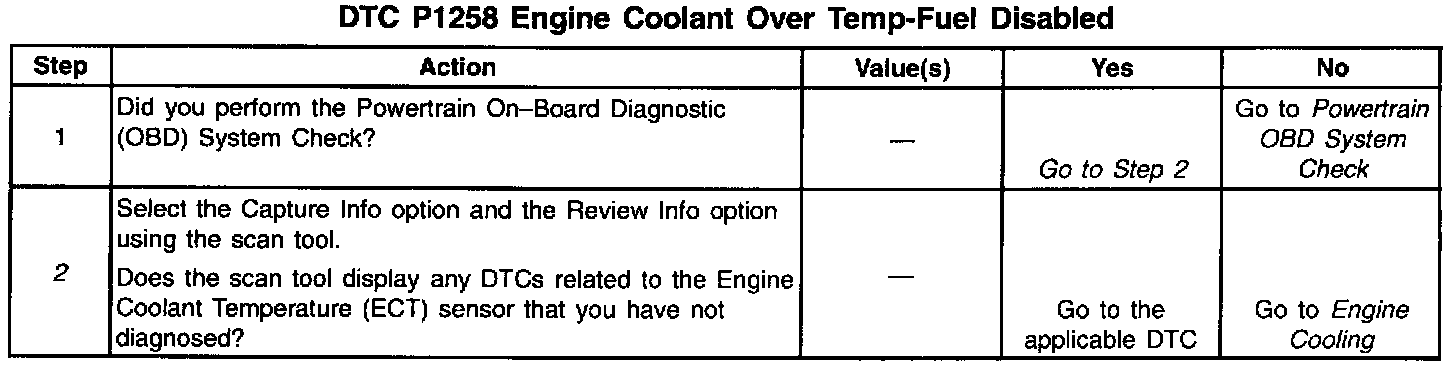 In order to reduce the engine temperature the PCM has the ability to disable a number of fuel injectors during an engine over temperature condition. The PCM considers the engine over temperature whenever the ECT reaches 131°C (268°F). This DTC sets in order to show that the PCM detected an over temperature condition and that the system engaged the protection mode.
