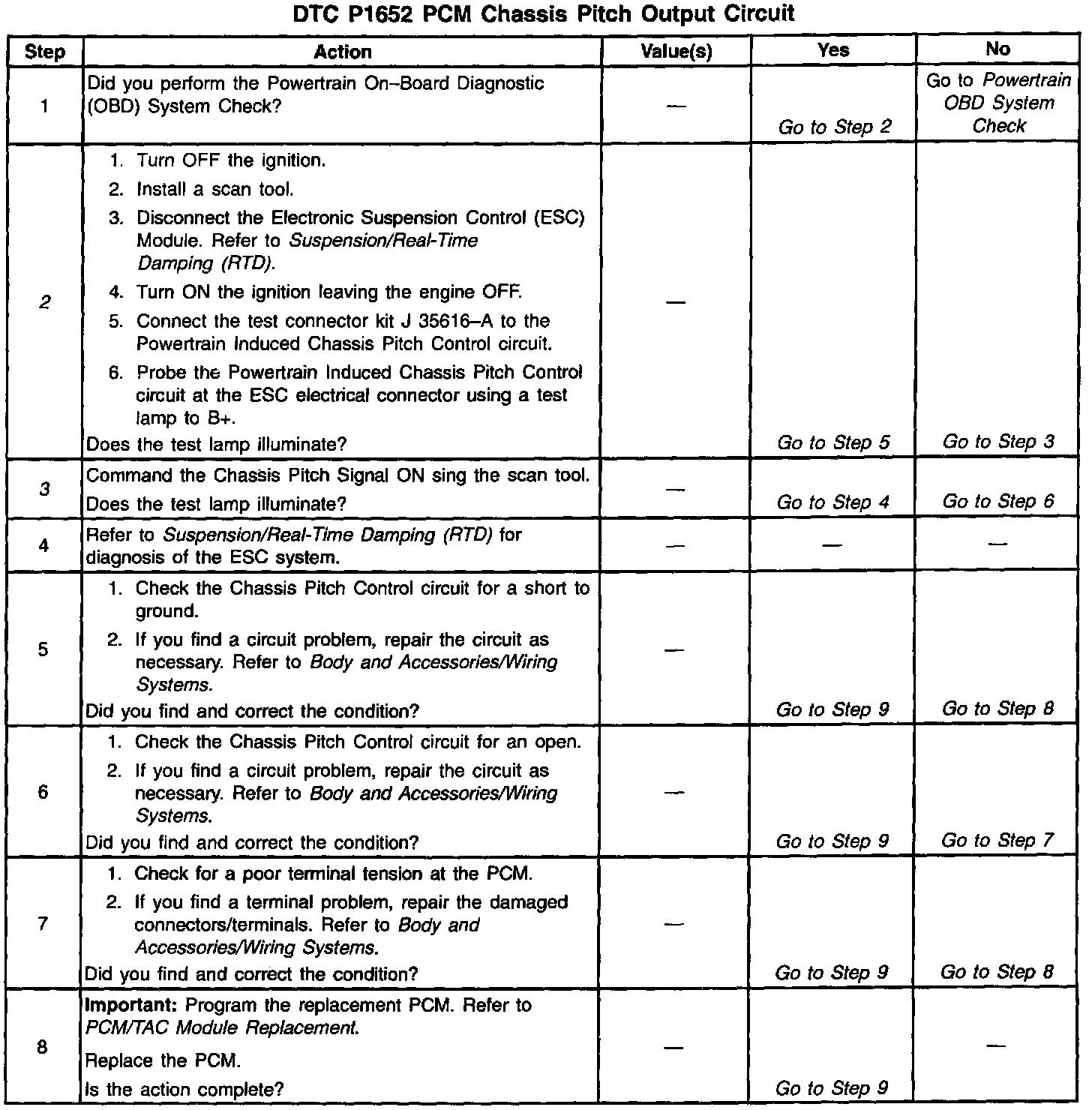 2. This step determines if the Powertrain Induced Chassis Pitch control circuit is shorted to ground.