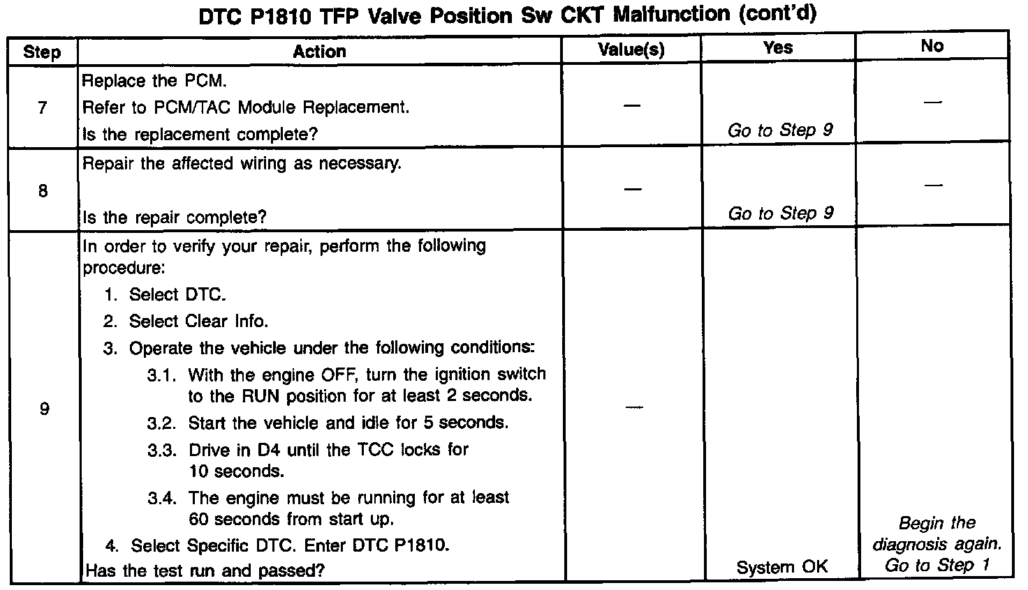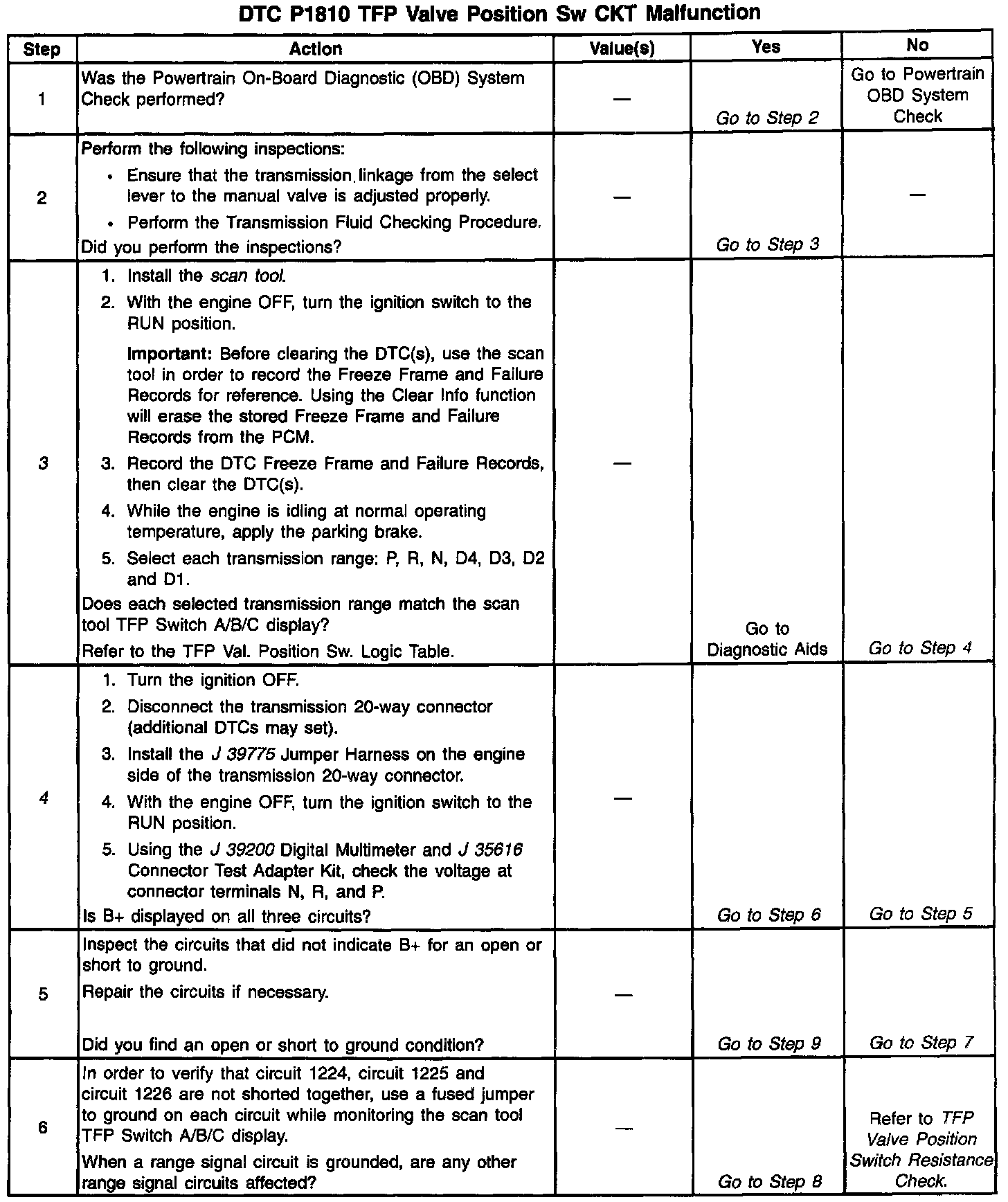 When the PCM detects an invalid state of the TFP Val. Position Sw. or the TFP Val. Position Sw. circuit by deciphering the TFP Val. Position Sw. inputs, then DTC P181O sets. DTC P1810 is a type B DTC.