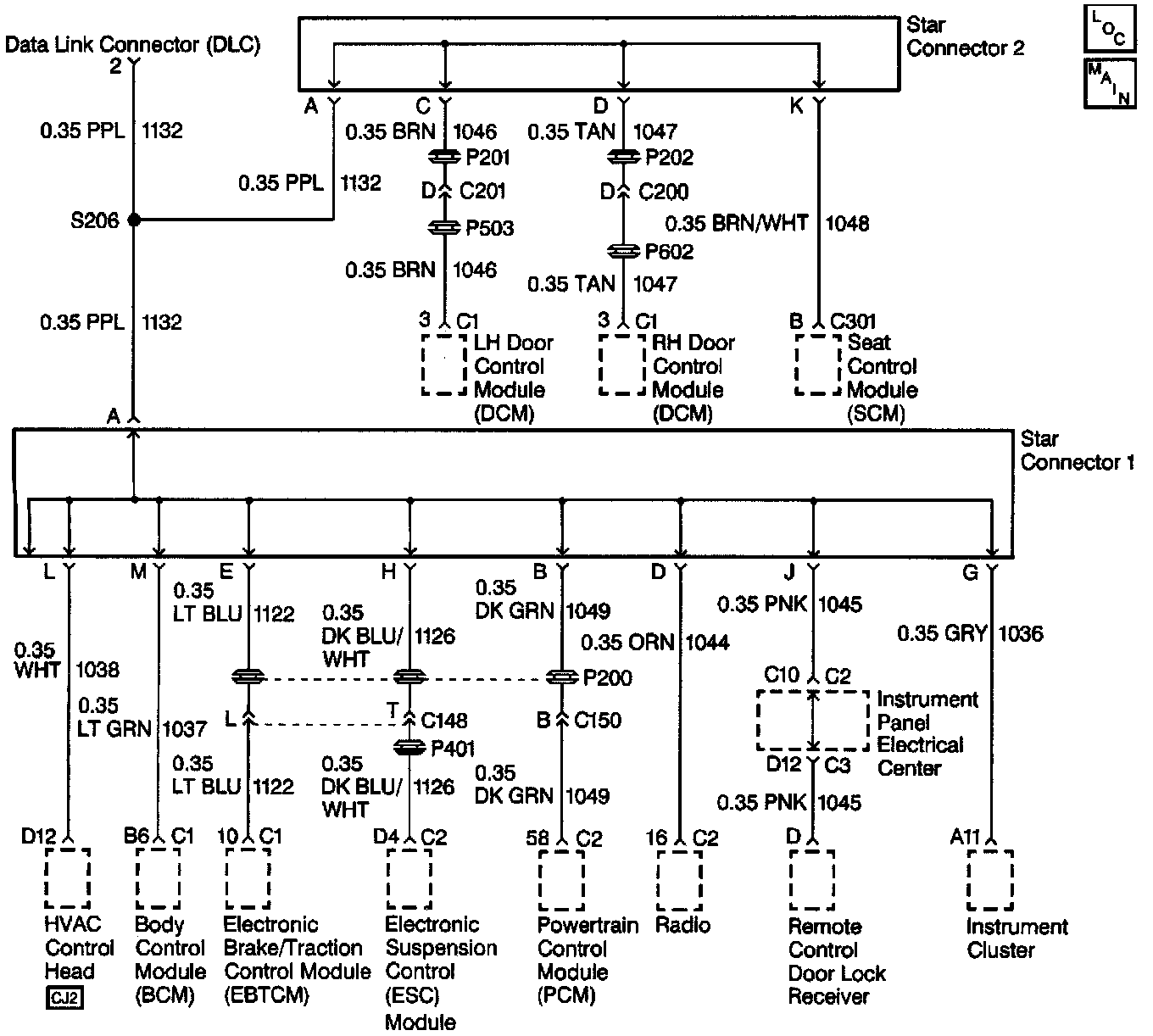 The serial data circuit is used to communicate information between systems. Each system connected to the serial data line is assigned its own recognition code (address). This code is used to identify which module or systems are communicating. Systems communicate with others by periodically sending a State of Health (SOH) message to each other. If the system sending the SOH message fails to receive a SOH message back, then a DTC identifying what system did not respond will set. Any system that also cannot communicate properly, will also store the appropriate communication DTC that was assigned to that system.