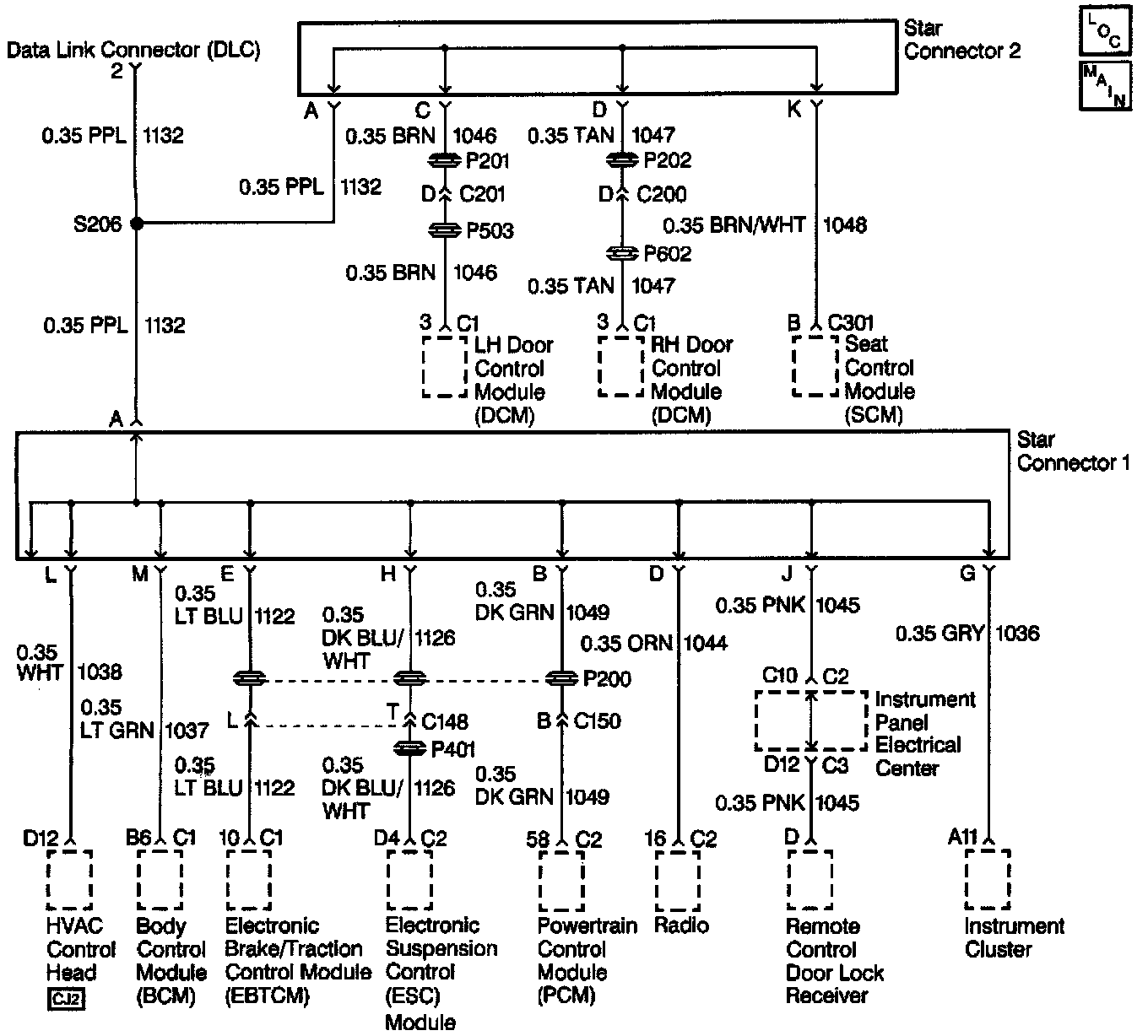 The serial data circuit is used to communicate information between systems. Each system connected to the serial data line is assigned its own recognition code (address). This code is used to identify which module or systems are communicating. Systems communicate with others by periodically sending a State of Health (SOH) message to each other. If the system sending the SOH message fails to receive a SOH message back, then a DTC identifying what system did not respond will set. Any system that also cannot communicate properly, will also store the appropriate communication DTC that was assigned to that system.