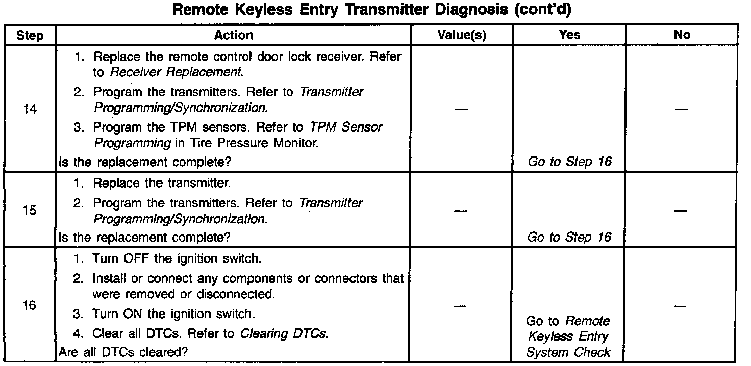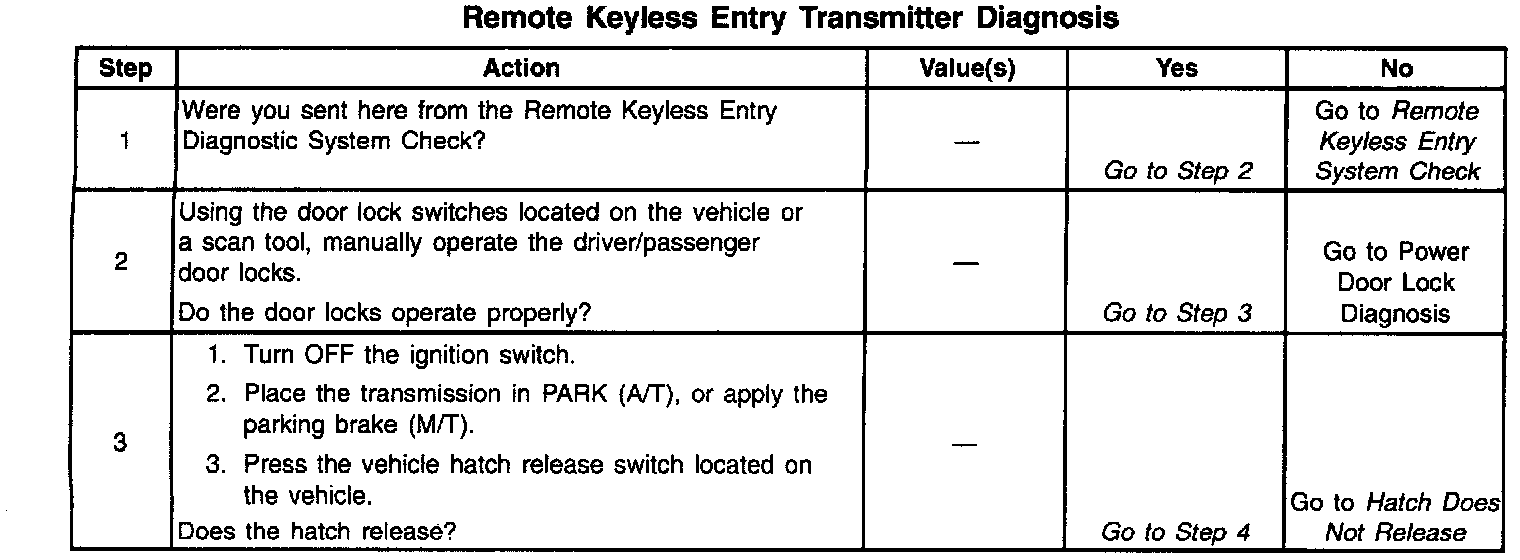Remote Keyless Entry Transmitter Diagnosis: