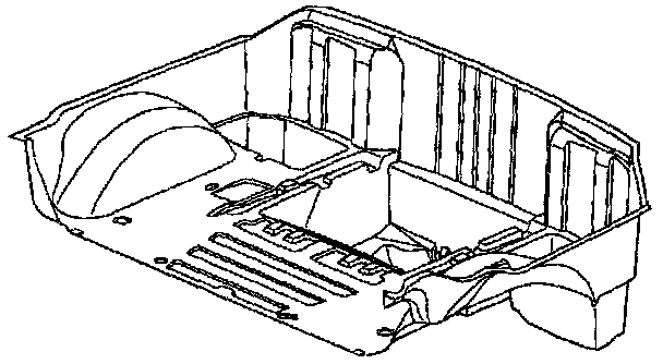 The Rear Compartment Panel tub is made of Sheet Molded Compound (SMC). The panel has many accessories that secure to it or pass through it. (The service part contains only those holes common to all body styles and options; it may require modifications to install all accessories for all models.) The rear compartment panel is bonded to the rear frame rails, the seatback area, and the rear impact bar. Sectioning may be performed if damage is limited to the rear portion of the rear compartment panel.