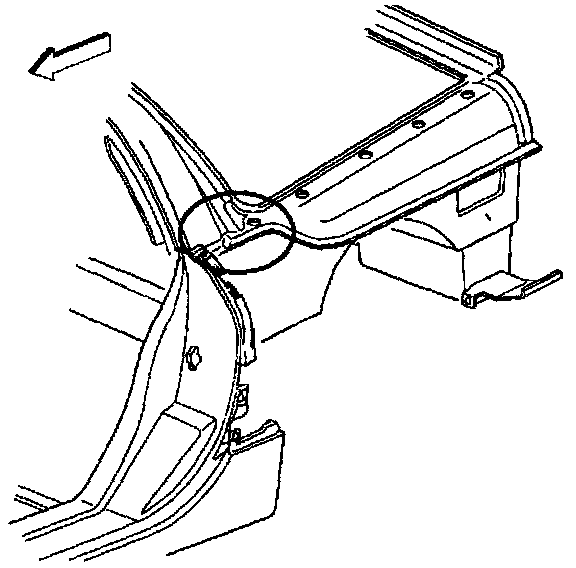 Since the Roof Bow Cover overlaps the Rear Compartment Panel Frame (rear surround), sectioning is faster and more cost effective than full panel replacement, if the Roof Bow Cover is not damaged. The frame panel may be sectioned anywhere along the quarter panel mounting surface. Sectioning in the front corners (at the base of the Roof Bow), does not require the use of a reinforcement, the Rear Compartment Panel flange can act as a backing plate. If sectioning is performed in the middle area of the rear surround a backing plate is required for butt-joint reinforcement.