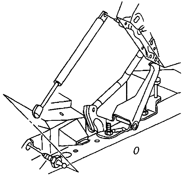 CAUTION: When a hood hold-open device is being removed or installed, provide alternate support to avoid the possibility of damage to the vehicle or personal injury.Hood Strut Replacement: Removal Procedure: