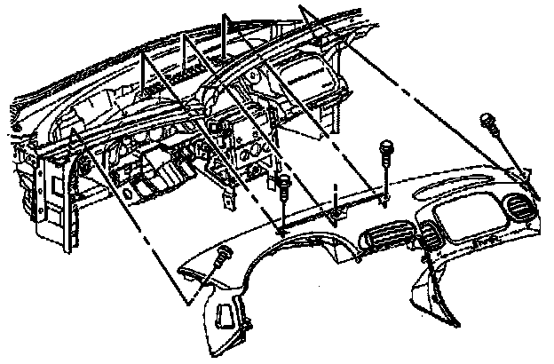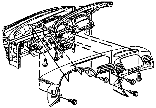 6. Install the screws retaining the upper trim pad to the driver knee bolster outer bracket, the center support bracket and the passenger SIR bracket.