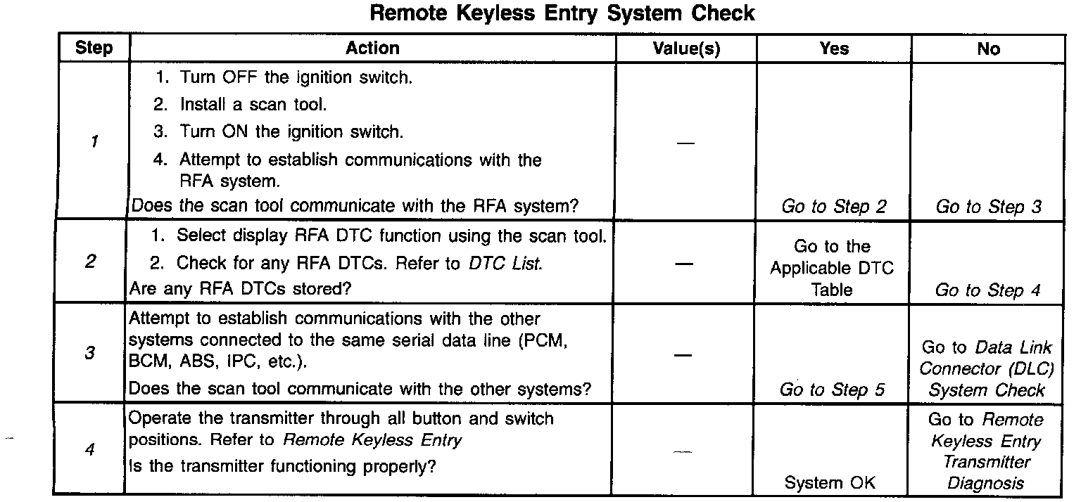 ^ Inspect the power door locks for proper operation. If the locks do not function properly, repair the locks before diagnosing the RFA system.