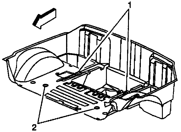 4. Locate the raised area (1) over the rear bolt. The raised area is approximately 23 mm (9 in) inboard from the wheelhouse and approximately 31 mm (12 in) forward of the rear compartment vertical panel.