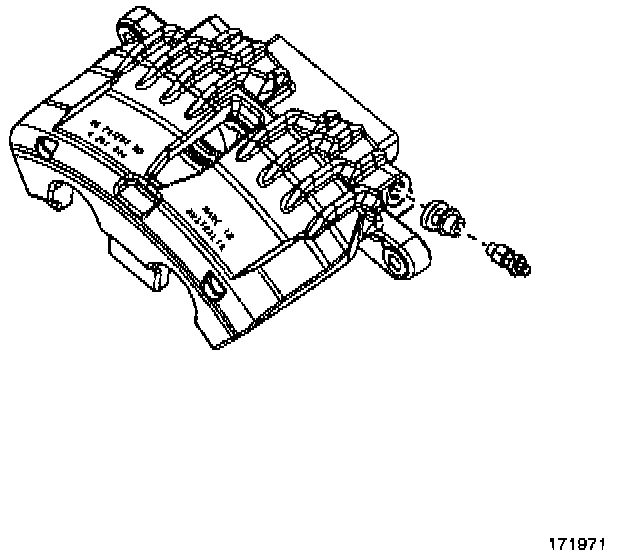 12. Blow out all passages in the brake caliper housing and the brake caliper bleeder valve.