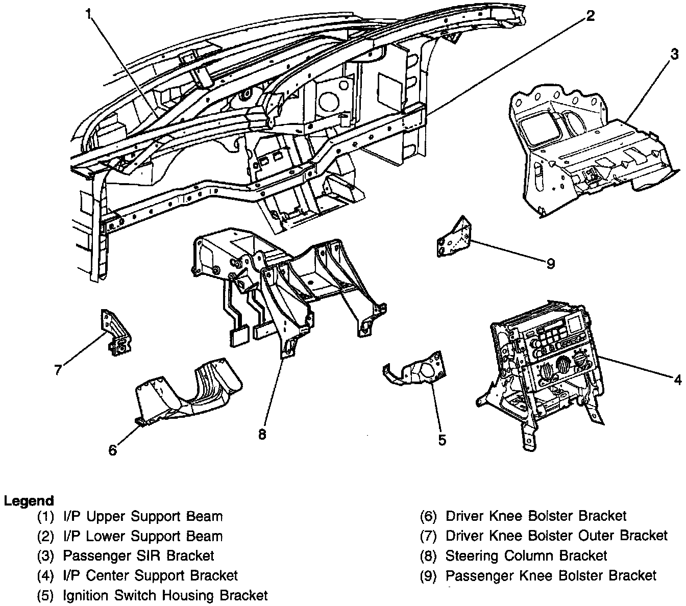 Instrument Panel Structure Primary Components:
