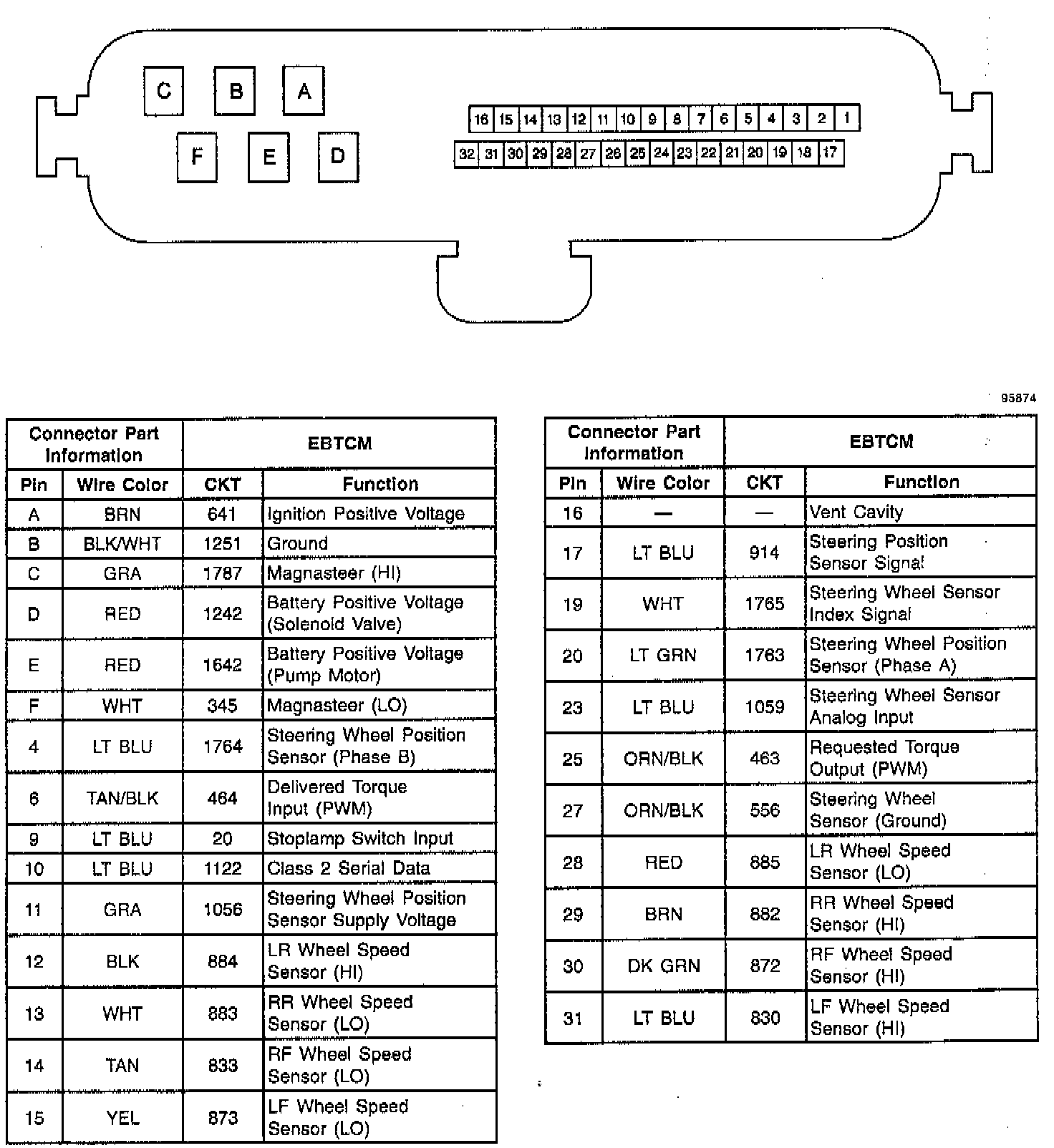EBTCM Connector Pinout Table: