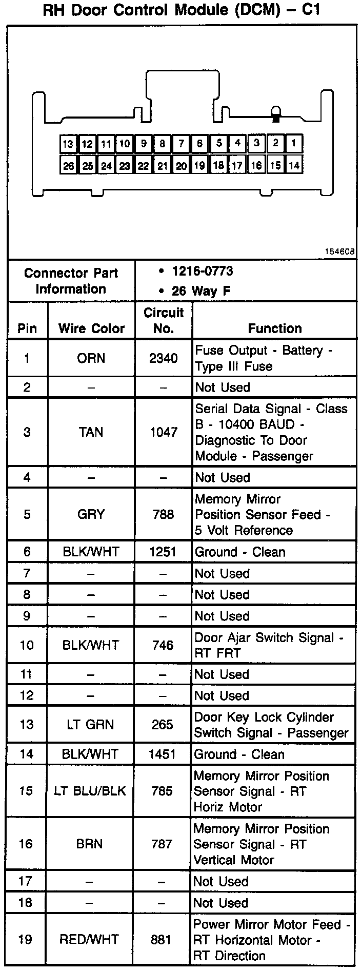 RH Door Control Module (DCM): C1 (Part 1 Of 2):