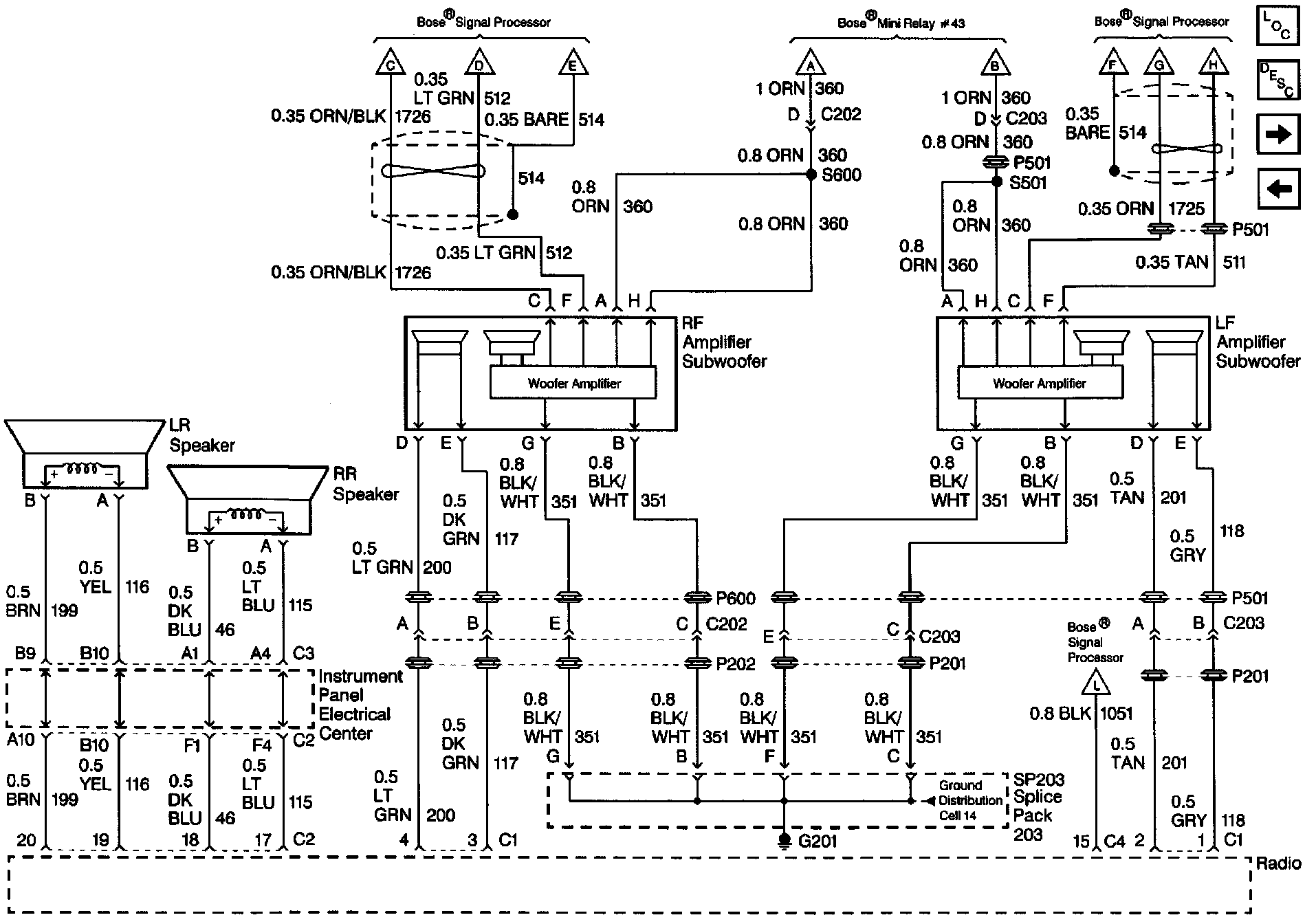 Radio/Audio System Schematics (Front And Rear Speakers):
