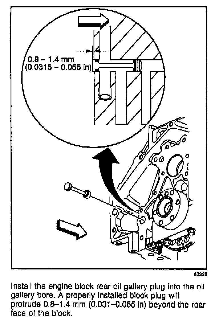 This bulletin revises the installed dimensions for the engine block rear oil gallery plug in the Engine Block Plug Removal, Engine Block Plug Installation, and Engine Rear Cover Installation procedures. This information replaces specifications and figures currently in the Service Manual.