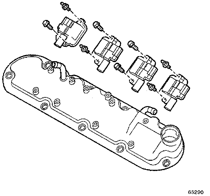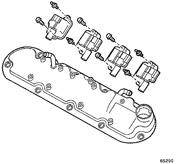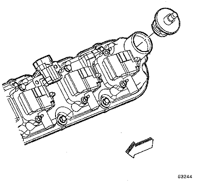NOTE: Do not reuse the valve rocker arm cover gasket. Install a new gasket during assembly. Remove the ignition coils before cleaning the cover in solvent. Do not submerge the ignition coils in solvent. Note the location of the beauty cover mounting studs for assembly. Do not remove the oil fill tube or crankcase vent valve grommet from the covers unless service is required. If the oil fill tube of crankcase vent valve grommet have been removed from the rocker arm covers, install a new tube or grommet during assembly.1. Remove the ignition coils, bolts and wire harness from the left cover (if required).