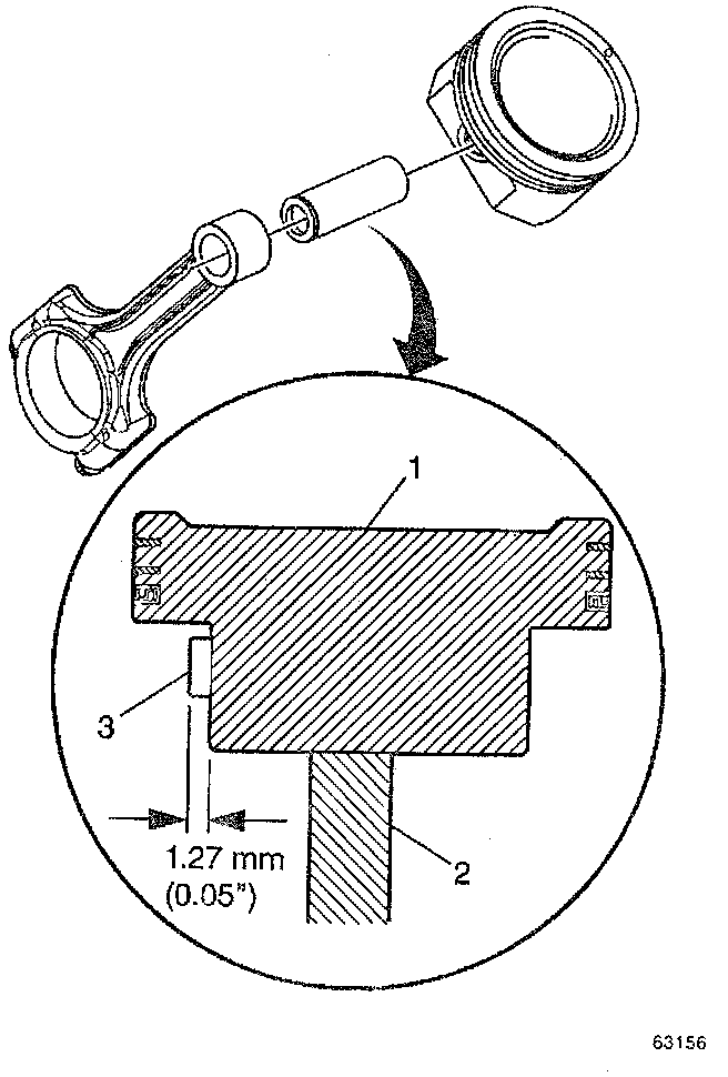 c. Measure the pin (3) for proper installation. A properly installed piston pin (3) should protrude 1.27 mm (0.05 inch) from the side of the piston.