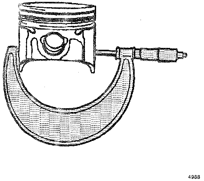 a. With the micrometer at a right angle to the piston, measure the piston at 11 mm (0.433 inch) from the bottom of the skirt.