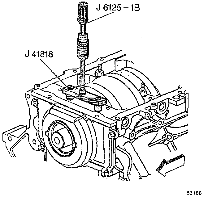 3. Install the crankshaft bearing cap remover. Tighten the crankshaft bearing cap remover bolts to 11 Nm (100 inch lbs.).