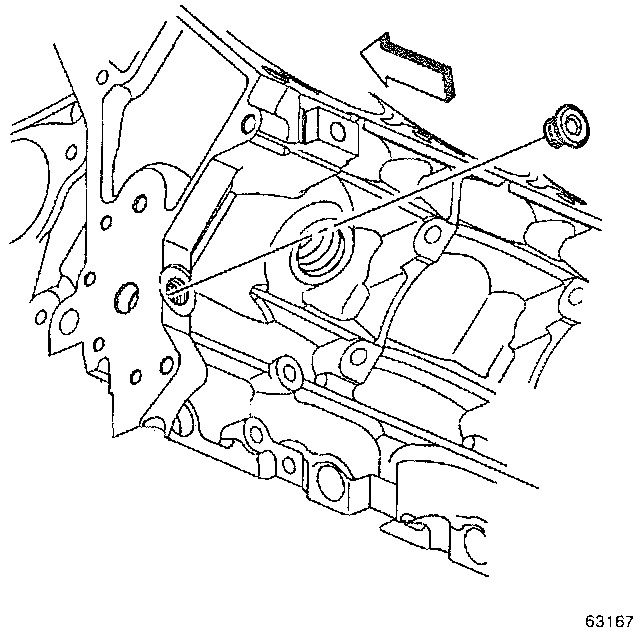 11. Inspect the engine block rear oil gallery plug and O-ring seal. If the O-ring seal on the plug is not cut or damaged, the rear oil gallery plug may be reused.