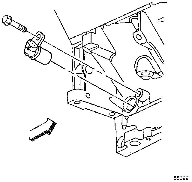 c. Install the sensor. Align the notch in the sensor retaining bracket with the bolt hole in the block.