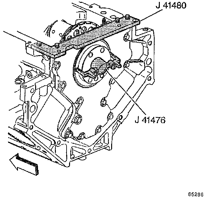 ^ J 41476 Front/Rear Cover Alignment (Crankshaft Oil Seal Area)