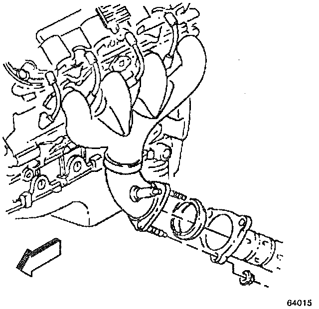 a. Tighten the exhaust manifold bolts a first pass to 15 Nm (11 ft. lbs.). Tighten the exhaust manifold bolts beginning with the center two bolts. Alternate from side-to-side, and work toward the outside bolts.