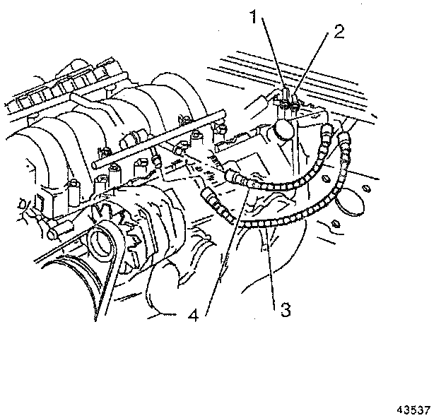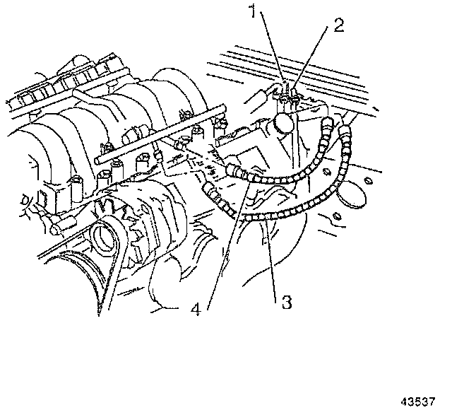 12. Connect the fuel lines (3 and 4) to the fuel rail.