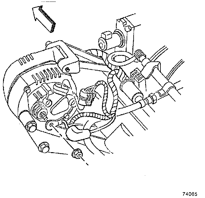 8. Install the generator mounting bolts. Tighten the generator mounting bolts to 50 Nm (37 ft. lbs.).