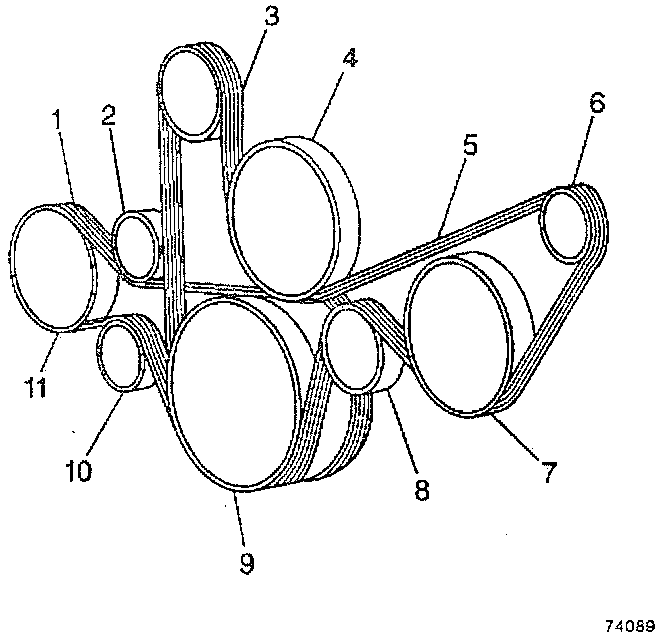 10. Install the accessory drive belt (5) to the generator pulley (6).